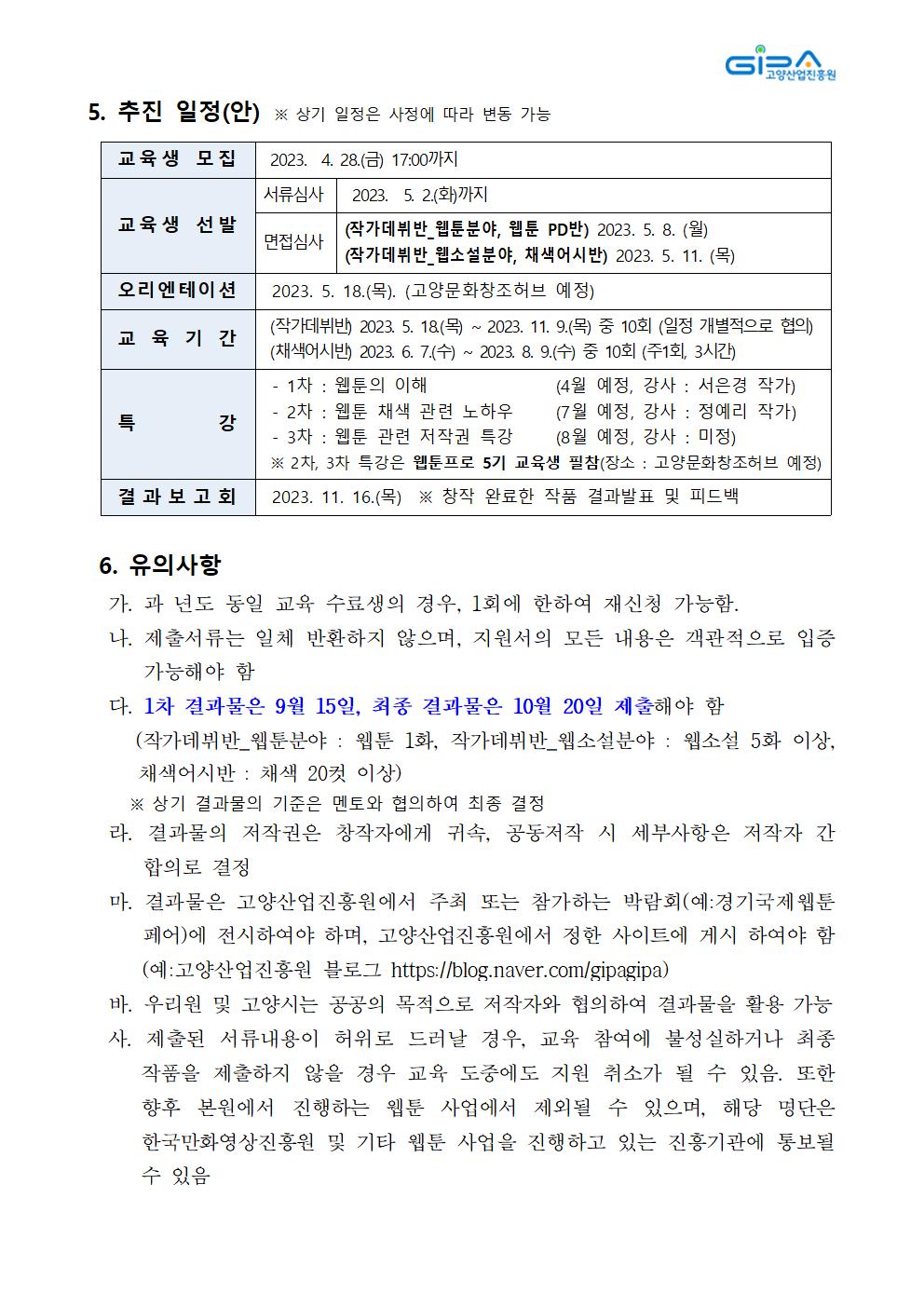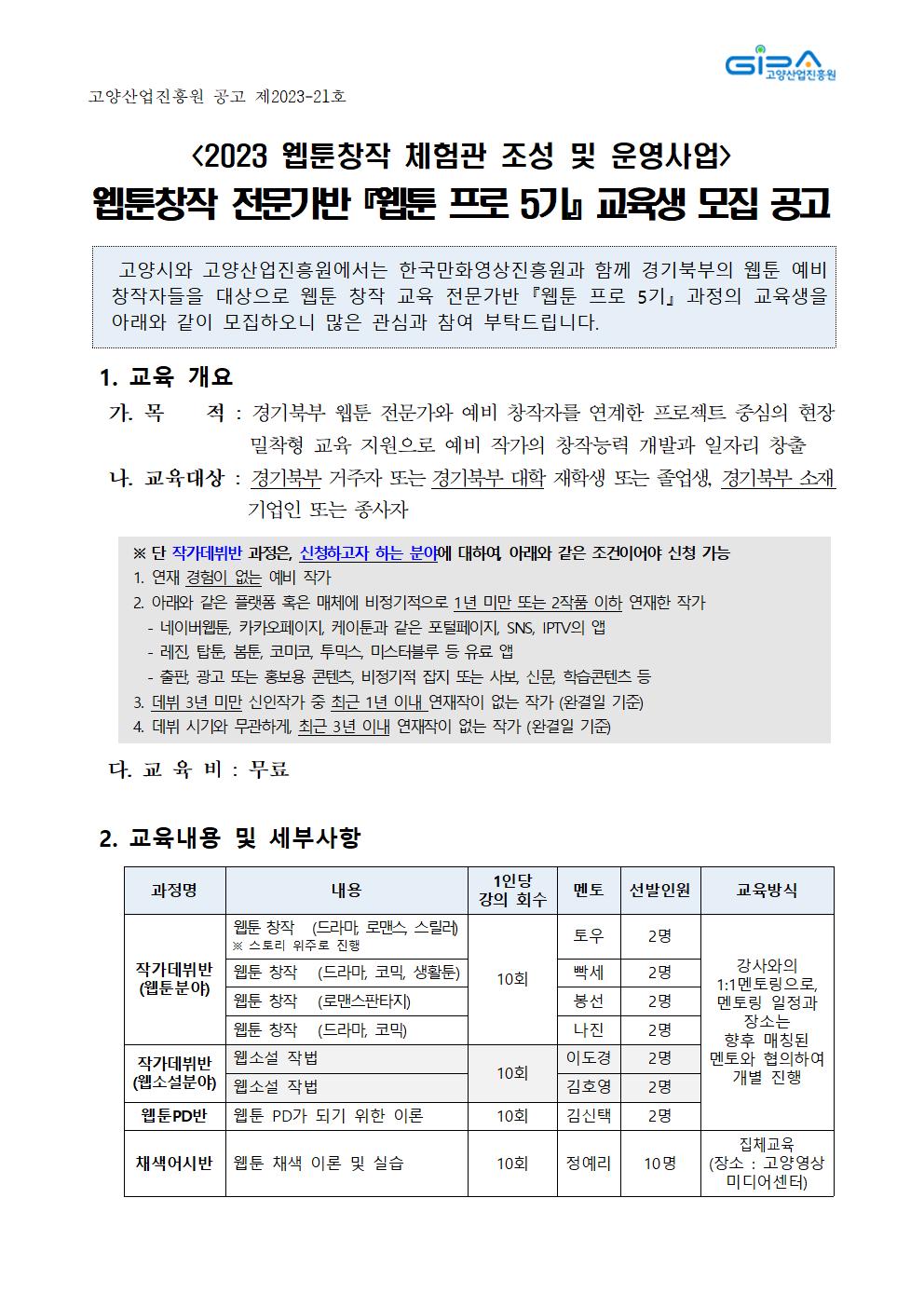 2023 웹툰프로 5기 교육생 모집 공고문.hwp