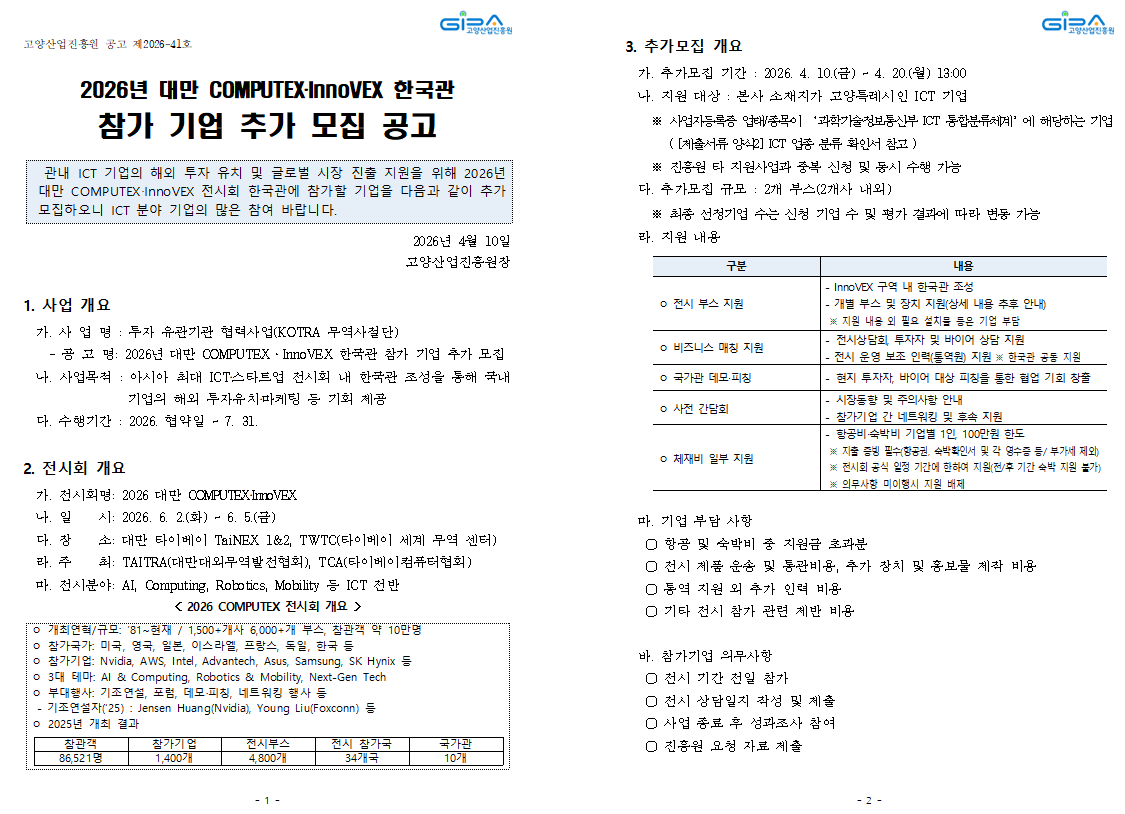 1. (공고문) 2026 대만 COMPUTEX InnoVEX 한국관 참가 기업 추가 모집 공고.pdf