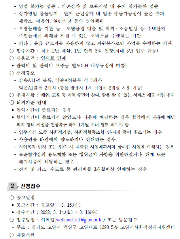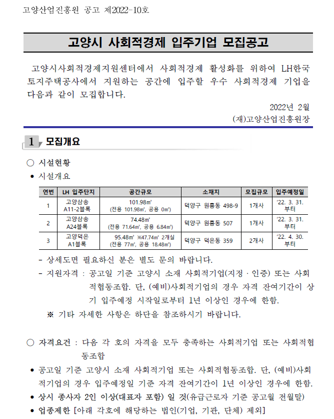 2022년 고양 LH 사회적경제 입주기업 모집공고