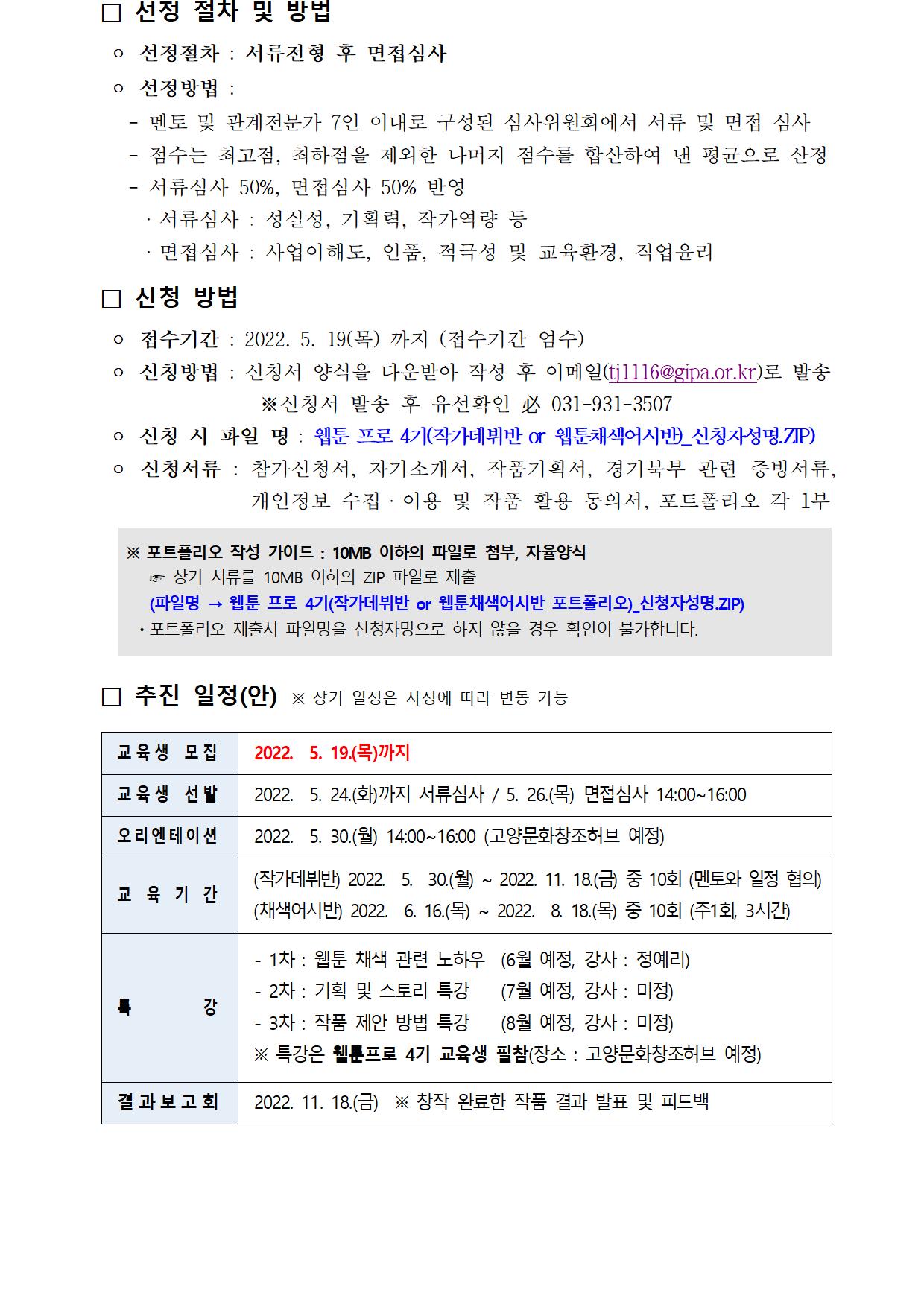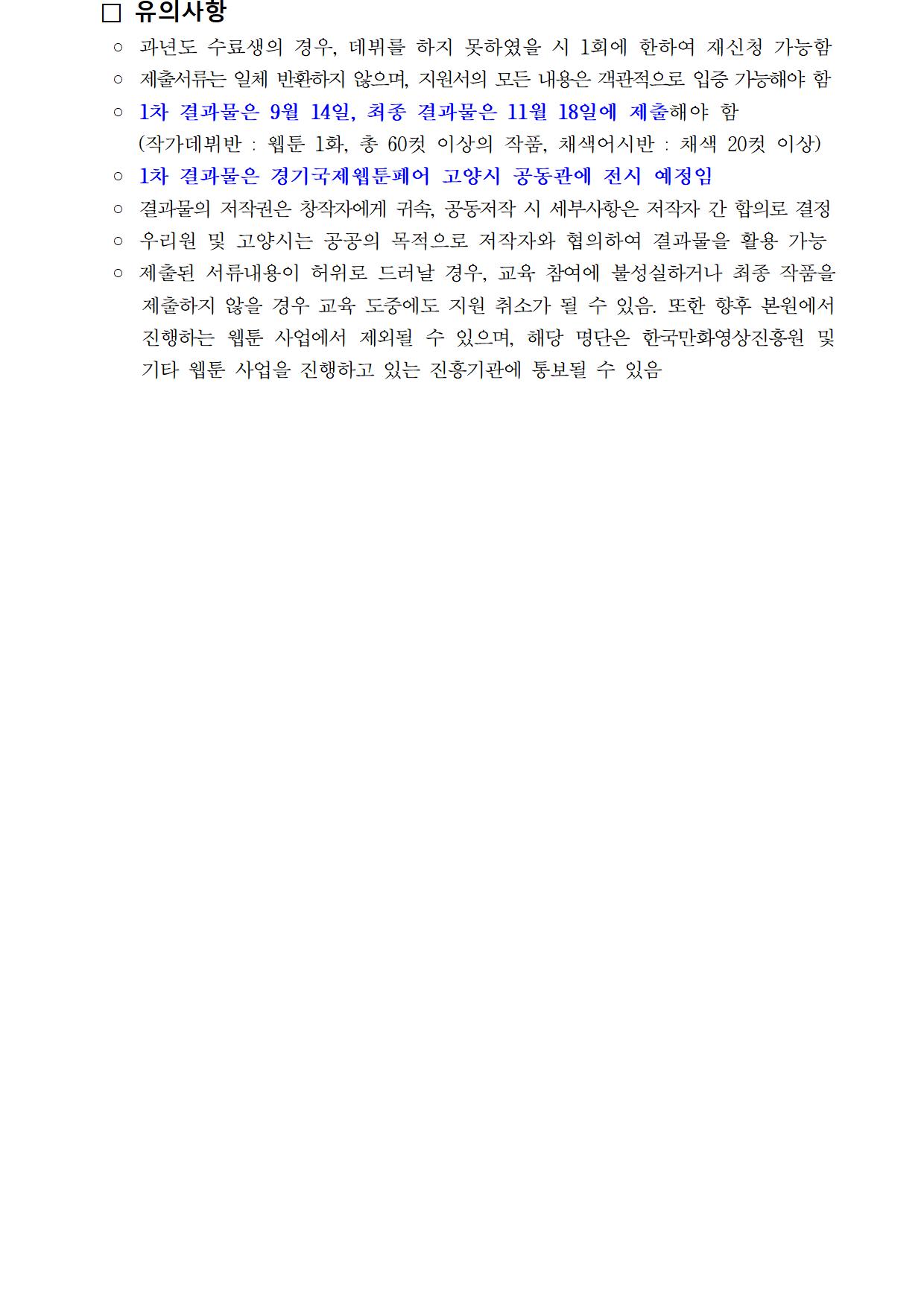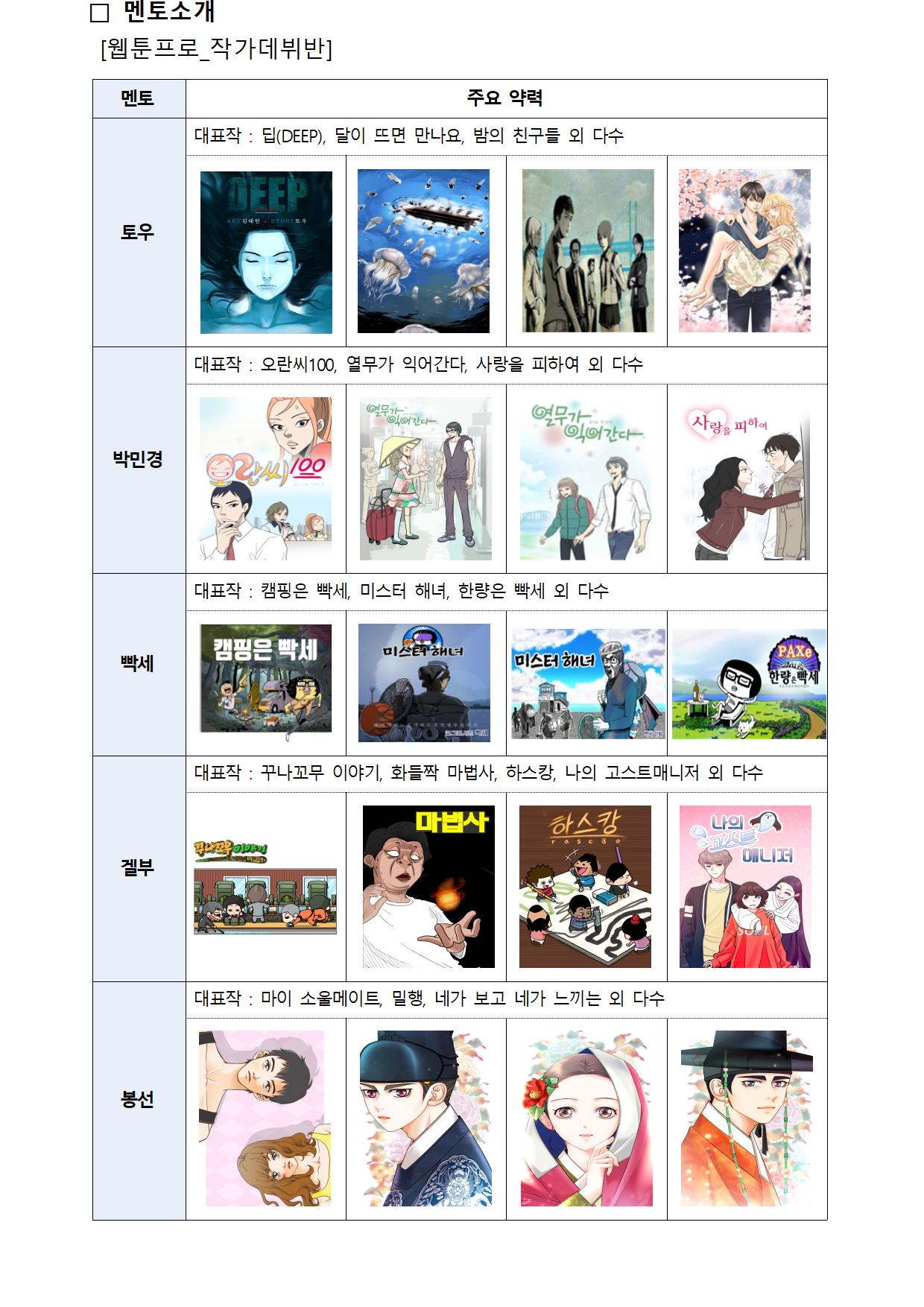 ※ 제출서류 중 "포트폴리오"는 60컷 이상의 웹툰 작품 1편을 의미하지는 않습니다.