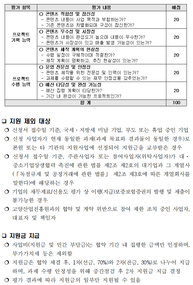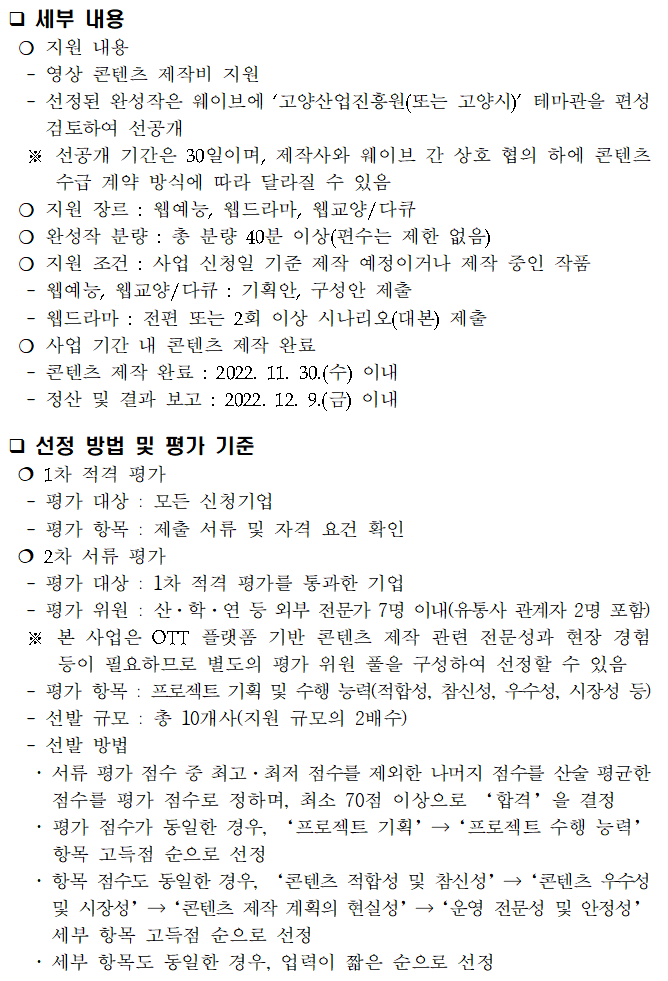 2022년 고양 콘텐츠 제작·유통 지원사업 공고