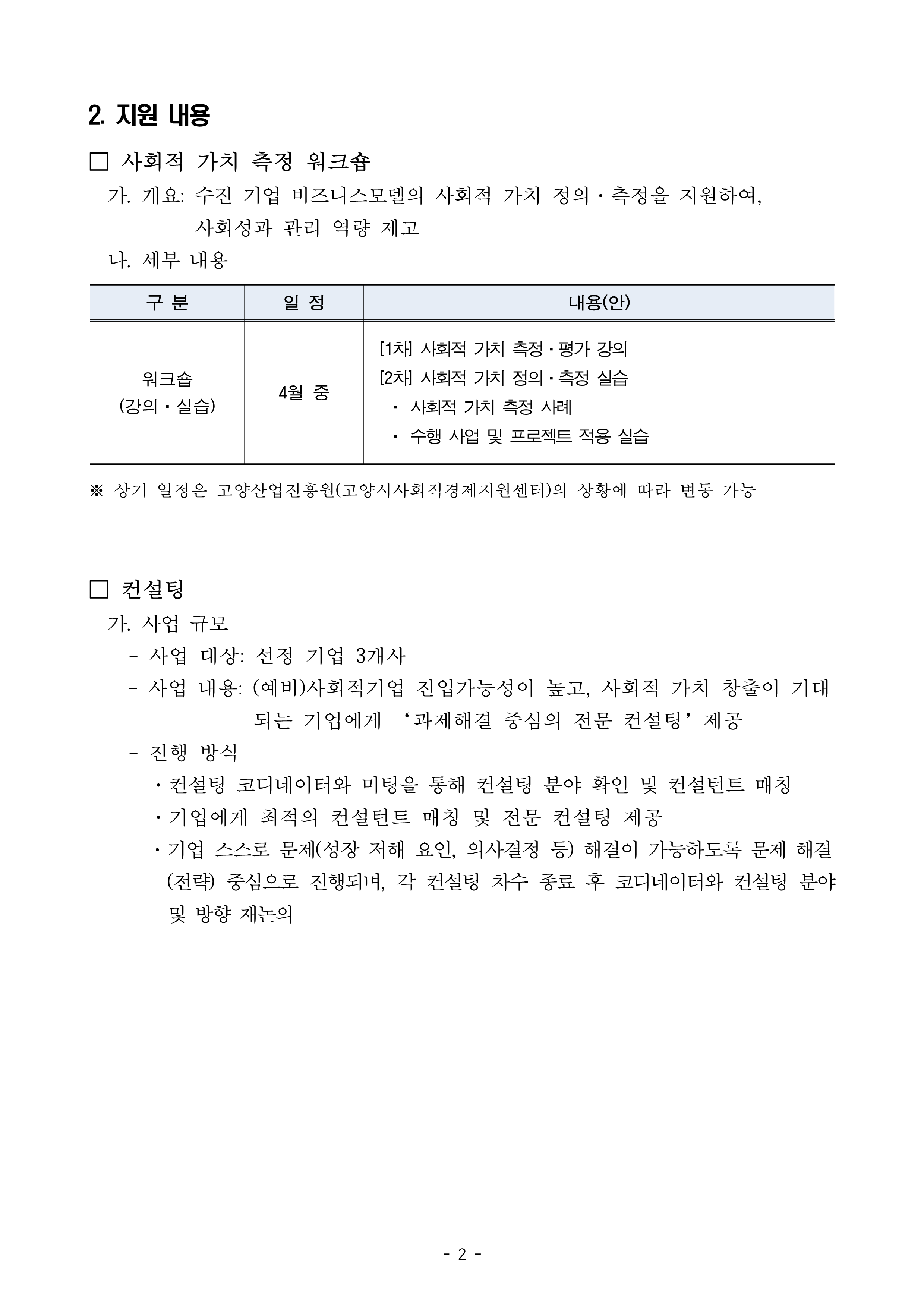 2025년 고양시 사회적경제 창업컨설팅 후속지원사업 참여 기업 모집