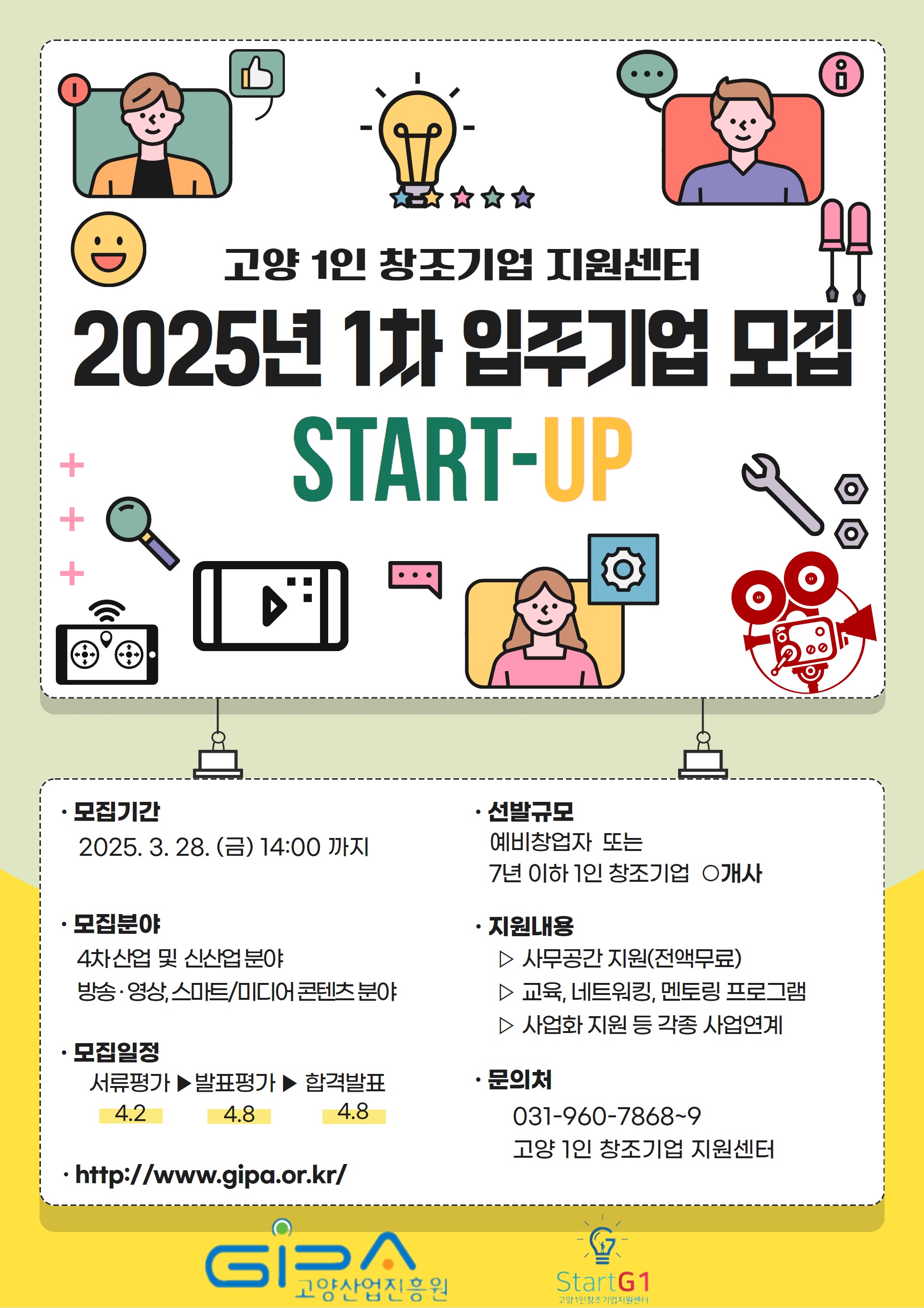 고양 1인 창조기업 지원센터 2025년 1차 신규 입주기업 모집
