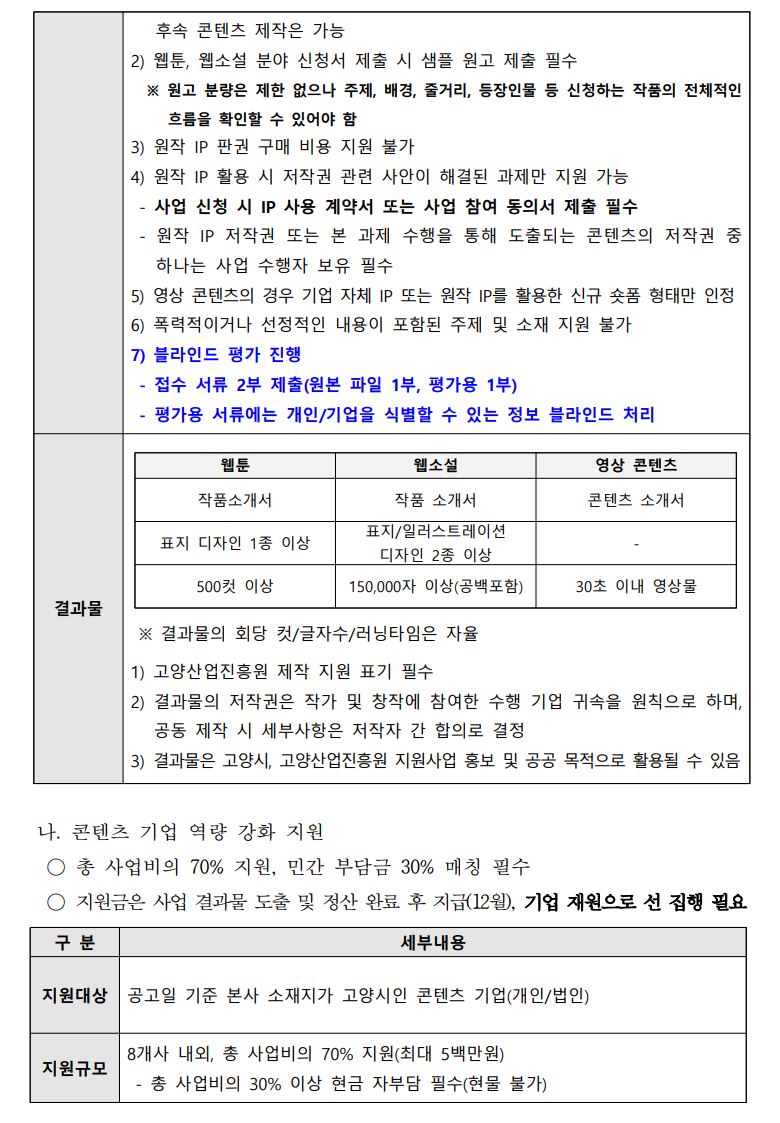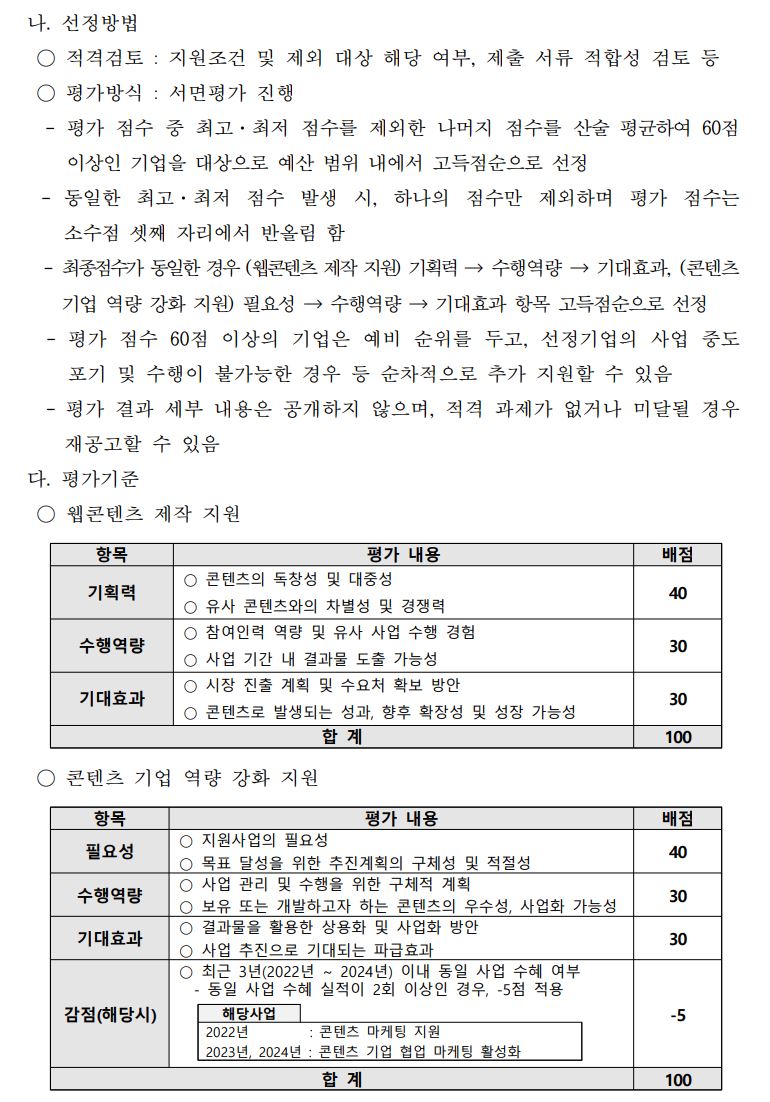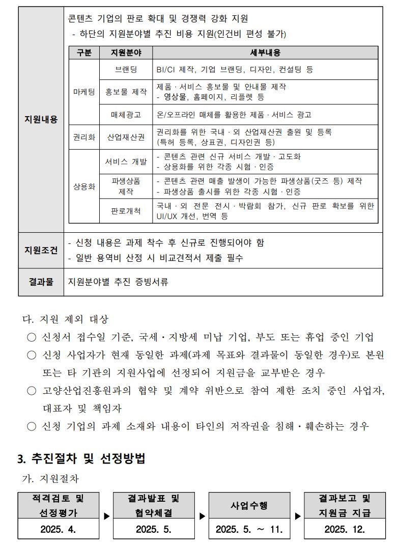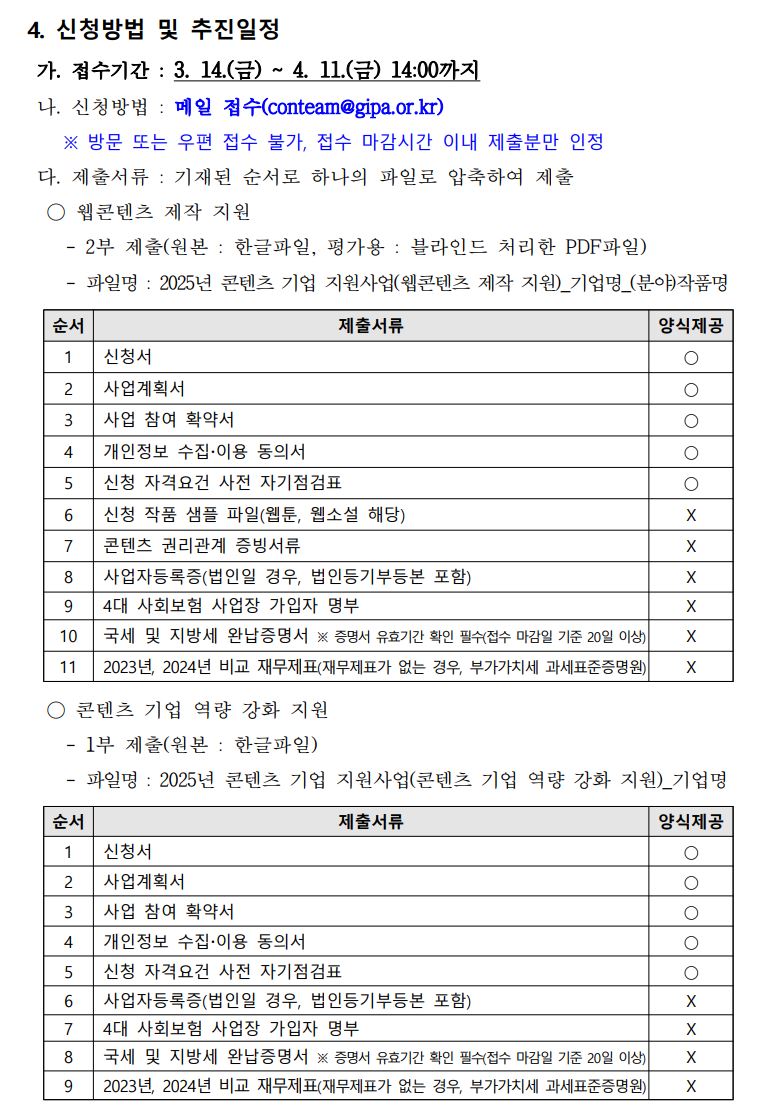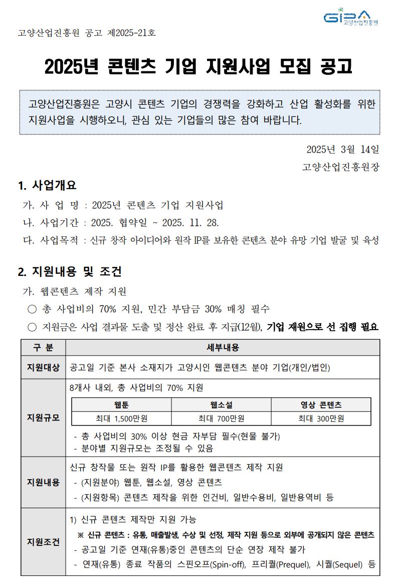 | 첨부파일 | 공고문_2025년 콘텐츠 기업 지원사업.hwp 신청양식_2025년 콘텐츠 기업 지원사업(웹콘텐츠 제작 지원)_기업명_(분야)작품명.hwp 신청양식_2025년 콘텐츠 기업 지원사업(콘텐츠 기업 역량 강화 지원)_기업명.hwp 관리 지침_2025년 콘텐츠 기업 지원사업_웹콘텐츠 제작 지원사업.hwp 관리 지침_2025년 콘텐츠 기업 지원사업_콘텐츠 기업 역량 강화 지원사업.hwp | ||