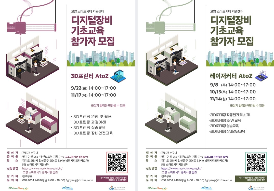 고양 스마트시티 지원센터에서 2022년 디지털 장비 기초교육(3D 프린터, 레이저커터) 참가자를 모집합니다.