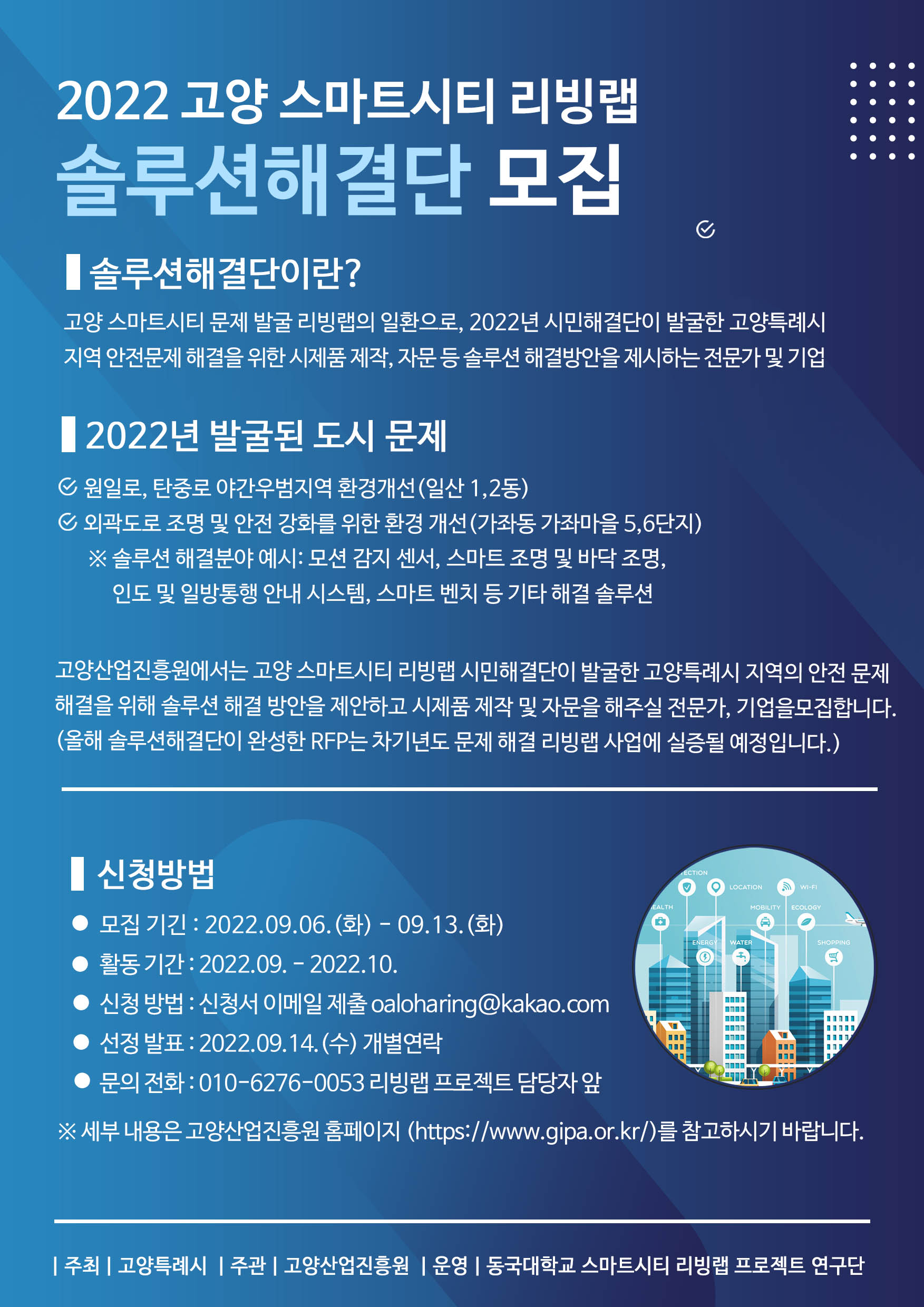 2022년 고양 스마트시티 문제 발굴 리빙랩 '솔루션해결단' 모집