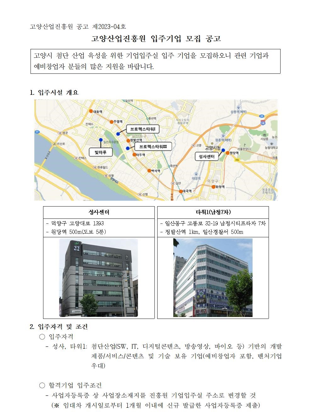 [기업입주시설] 2023년 1차 신규 입주기업 모집
