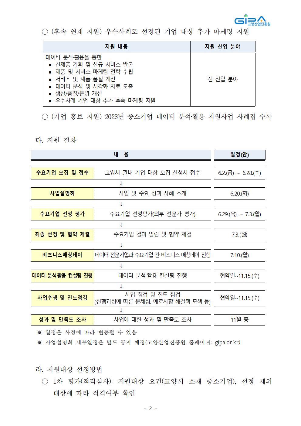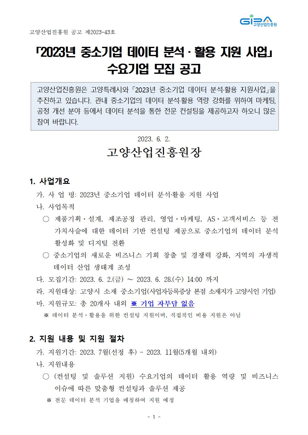 붙임. 공고문_2023년 중소기업 데이터 분석활용 지원사업 수요기업 모집 공고.hwp