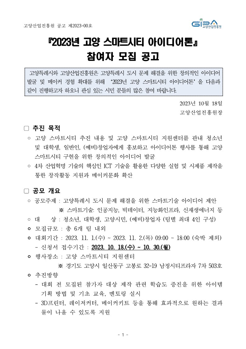 붙임 1. 공고문_2023년 고양 스마트시티 아이디어톤.hwp