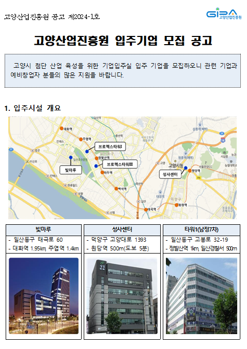 [기업입주시설] 2024년 1차 신규 입주기업 모집