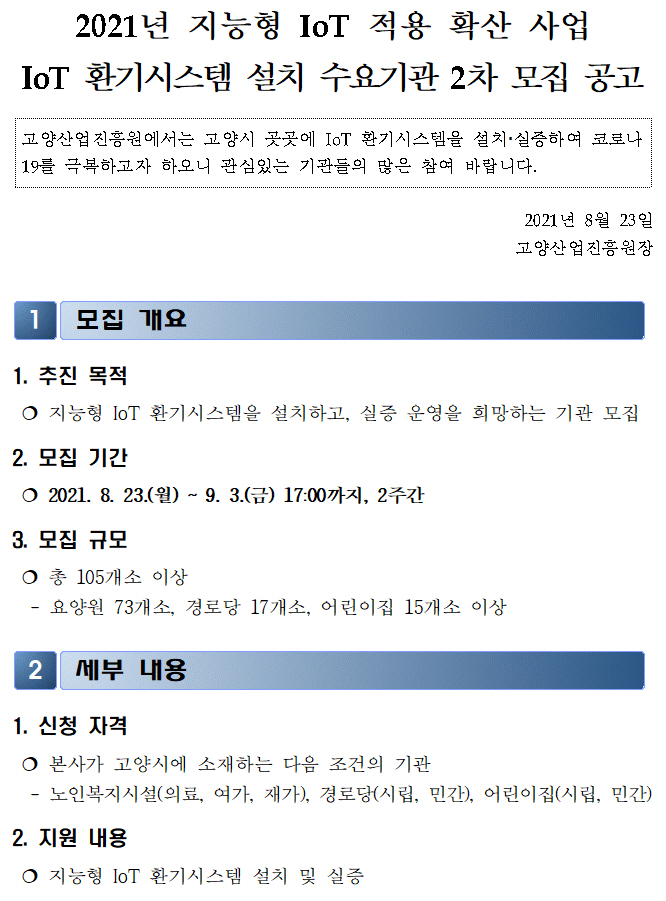2021년 IoT 환기시스템 설치 수요기관 2차 모집