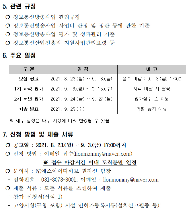 2021년 3차 방송∙영상∙콘텐츠 / ICT 신규 입주기업 모집