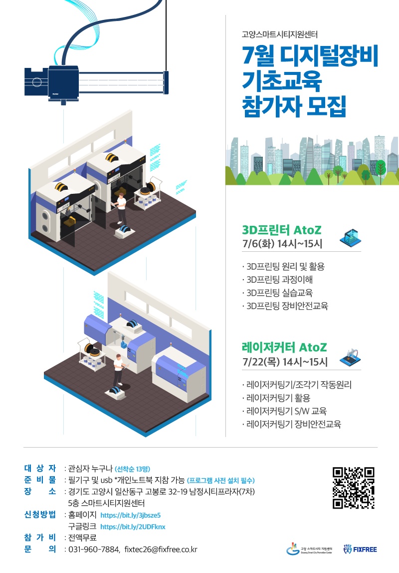 고양 스마트시티 지원센터에서 다음과같이 7월 디지털장비 기초교육 참가자를 모집합니다.