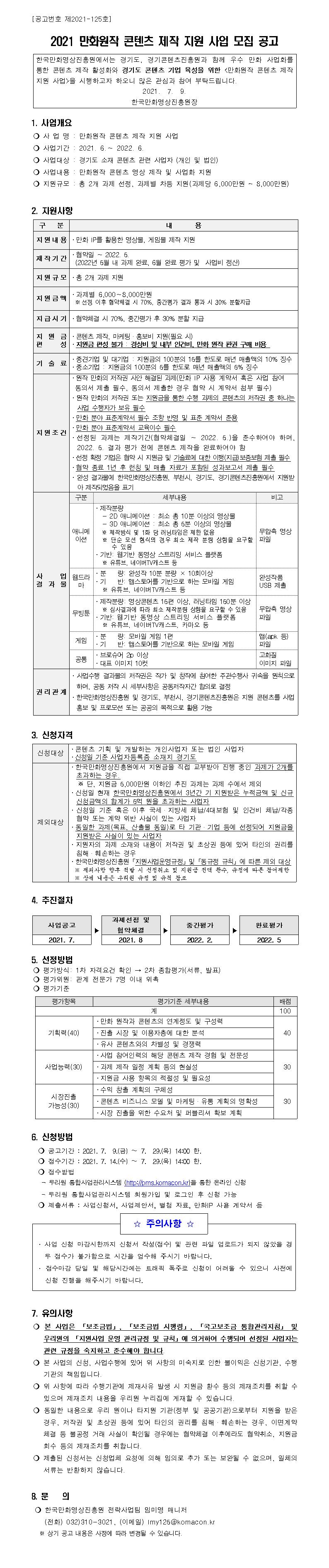 [일반] 2021 만화원작 콘텐츠 제작 지원 사업 모집