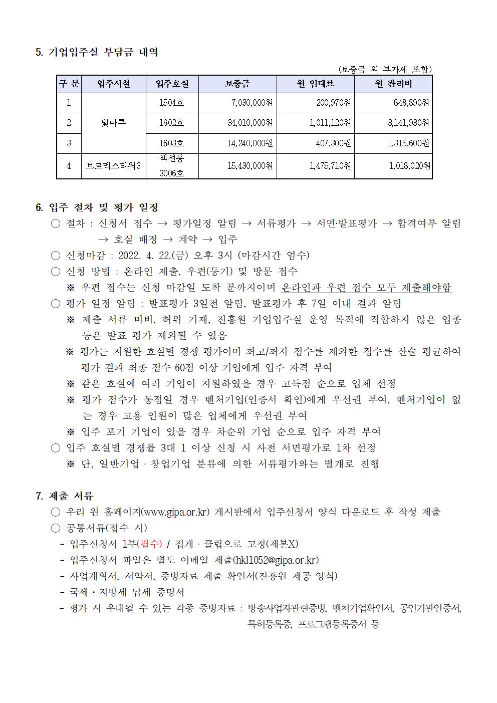 [일반] [기업입주시설] 2022년 3차 기업 입주시설 입주기업 모집