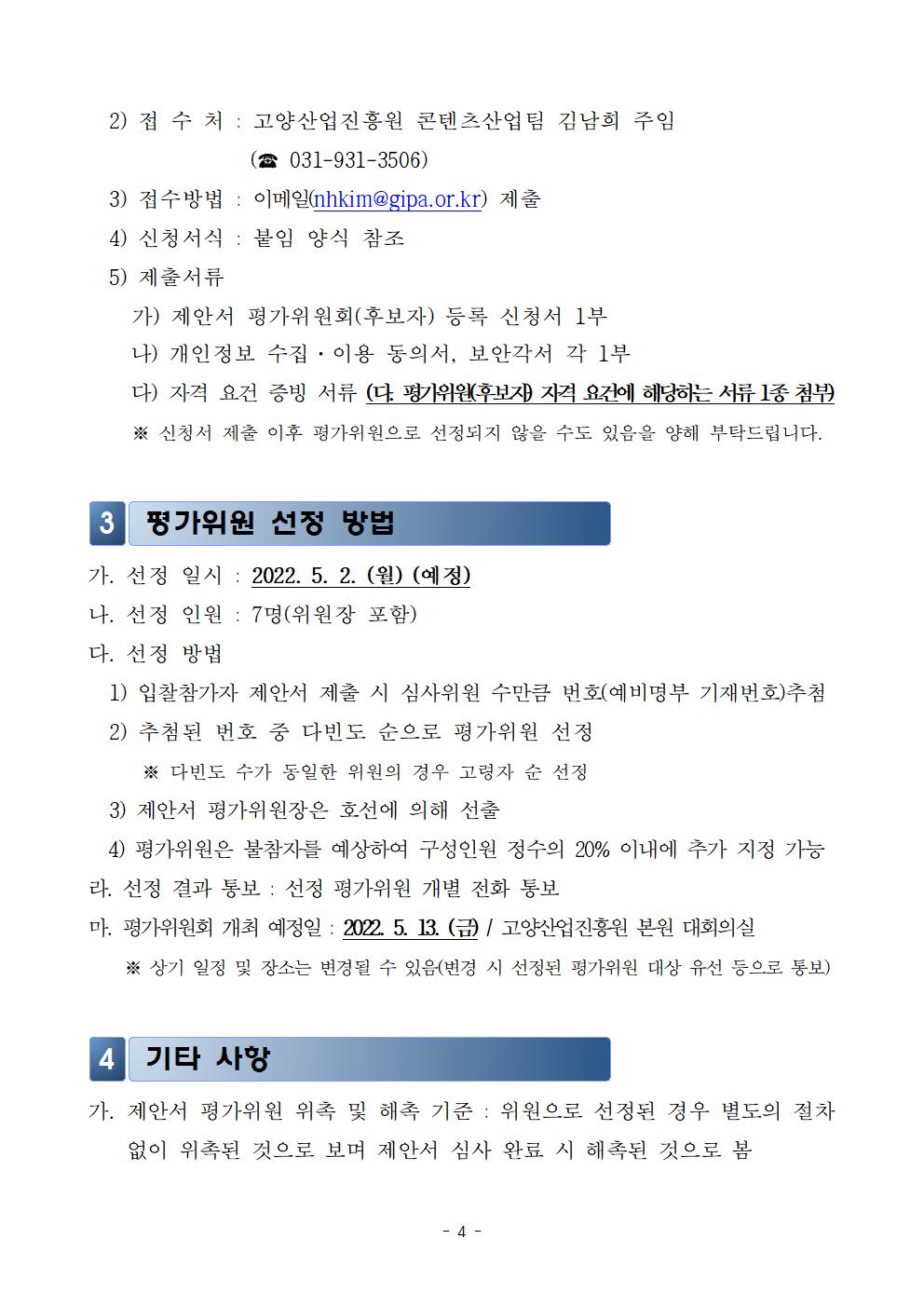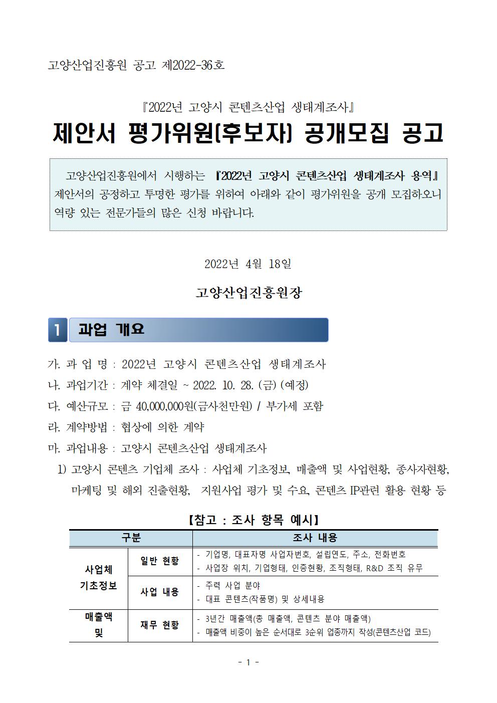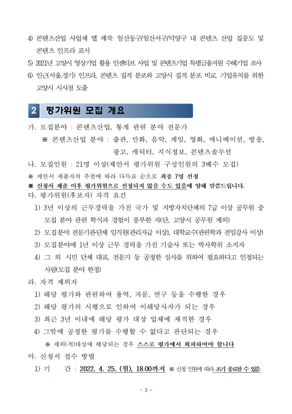 [일반] [조기마감]평가위원 모집 공고_2022년 고양시 콘텐츠산업 생태계조사 용역 제안서 평가위원(후보자) 모집