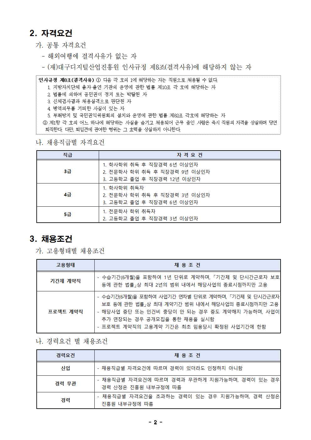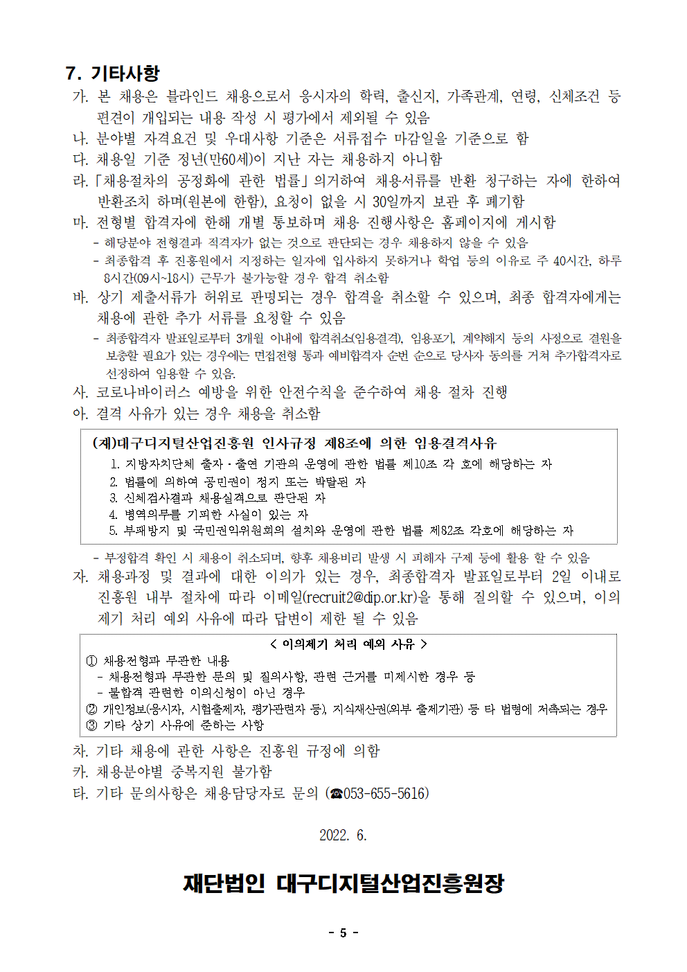 [유관기관] (재)대구디지털산업진흥원 2022년 제2차 신규직원 채용 재공고