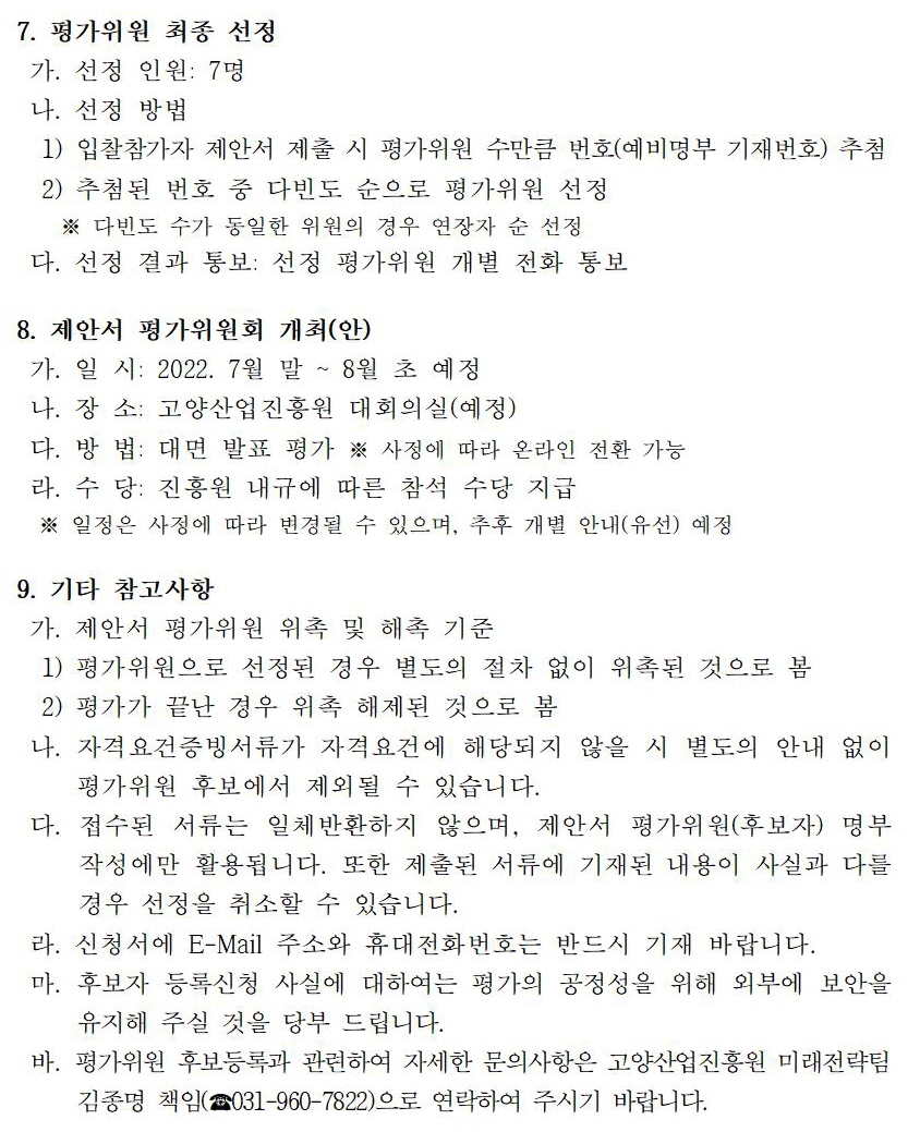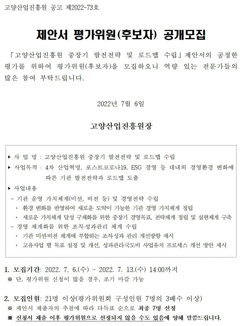 [일반] '고양산업진흥원 중장기 발전전략 및 로드맵 수립' 제안서 평가위원 공개모집
