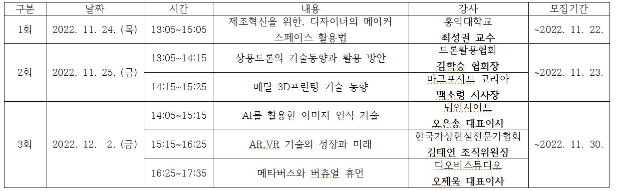 2. 모집정원: 회당 오프라인 선착순 30명(정원 초과시 Zoom 플랫폼 활용 실시간 온라인 참여 가능)