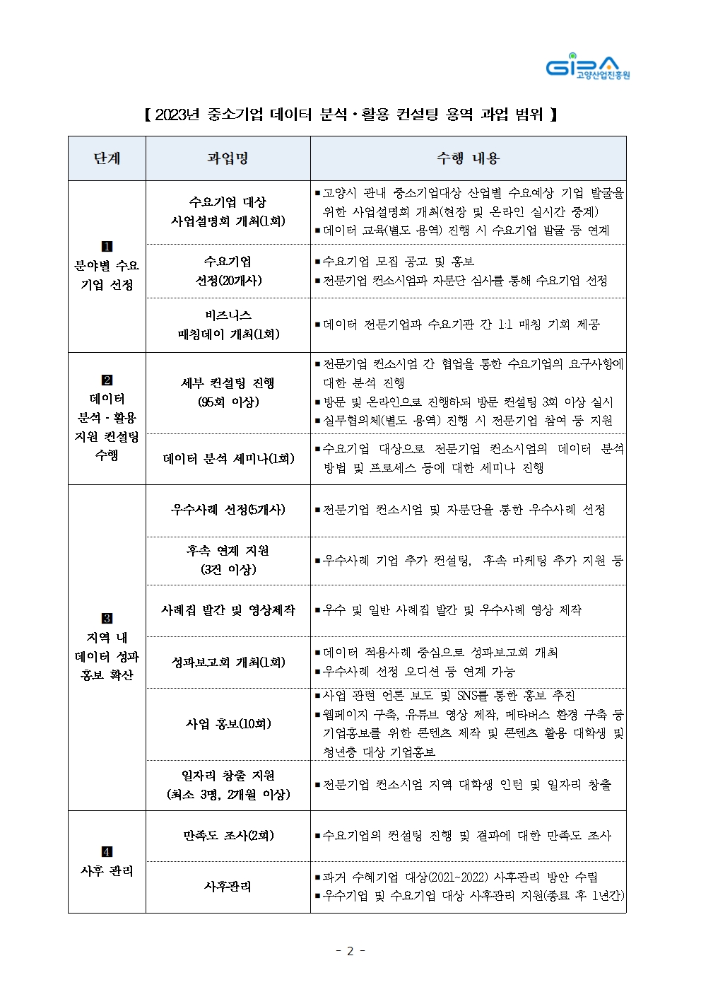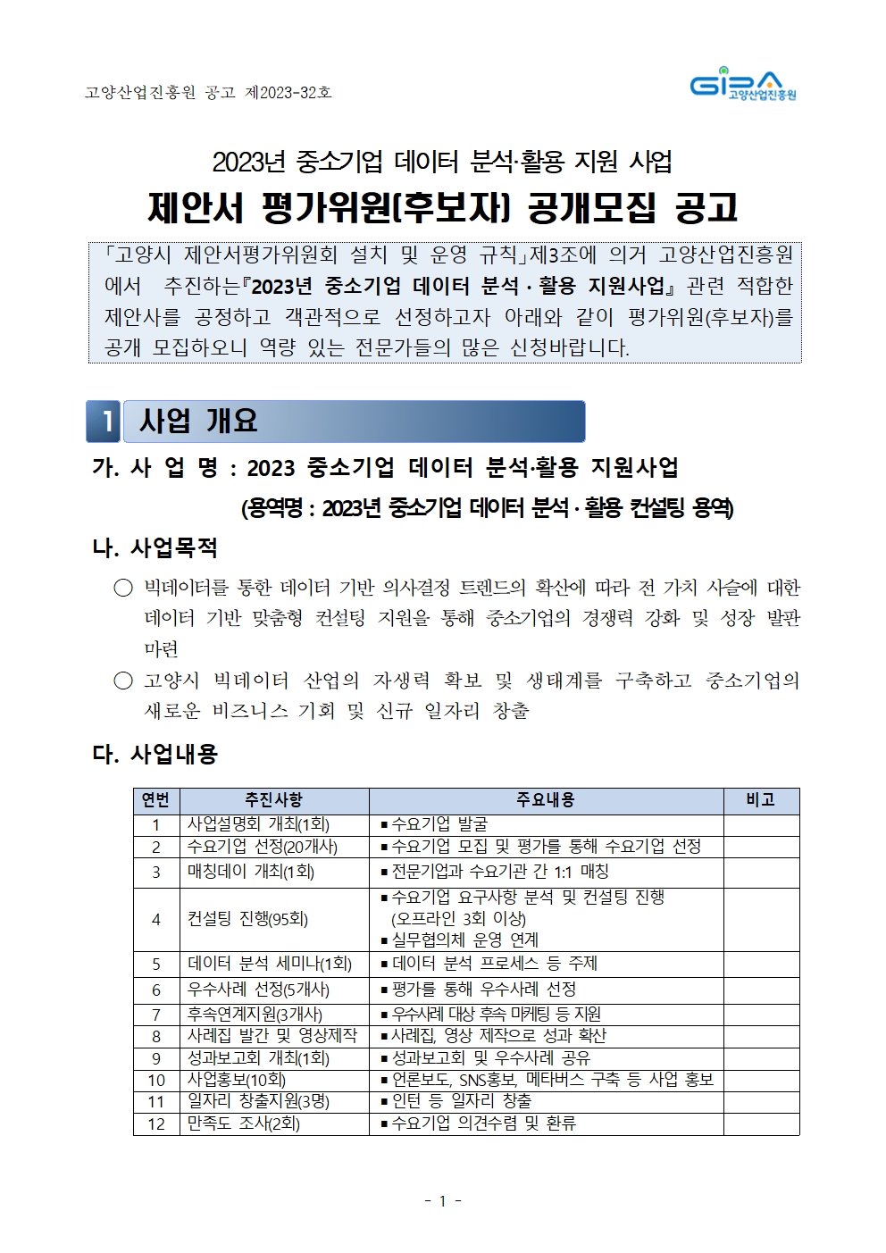 [조기마감]2023년 중소기업 데이터 분석·활용 컨설팅 용역 제안서 평가위원 공개모집 공고 안내문