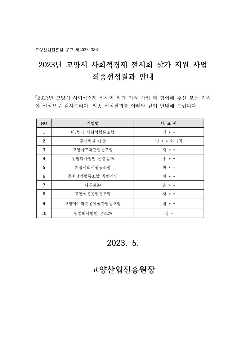 2023년 고양시사회적경제 전시회 참가지원사업 최종선정결과 안내 (2)_1.jpg