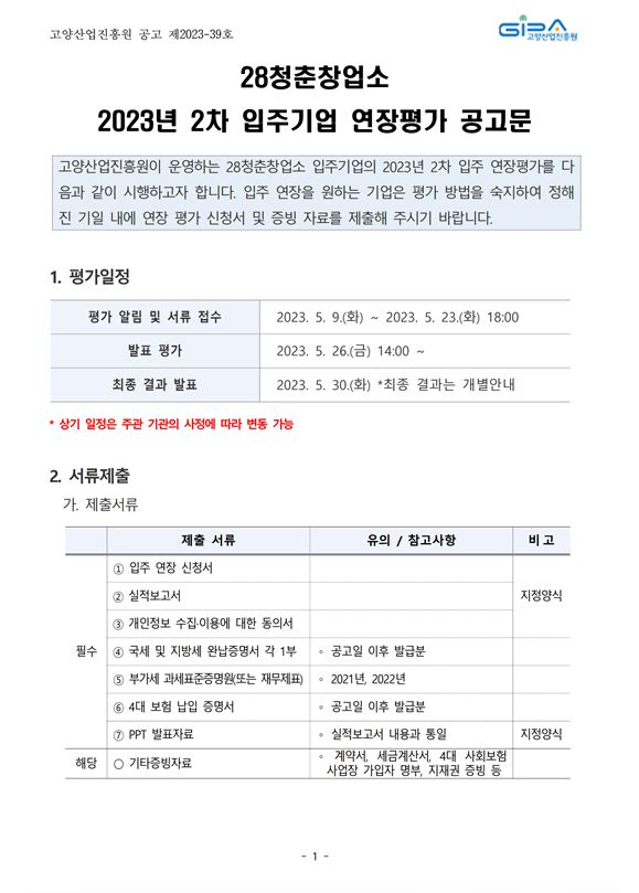 [일반] 2023년 28청춘창업소 2차 입주기업 연장평가 공고