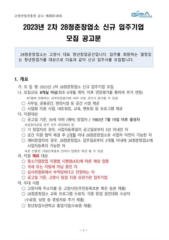2023년 2차 28청춘창업소 신규 입주기업 모집 공고문.hwp