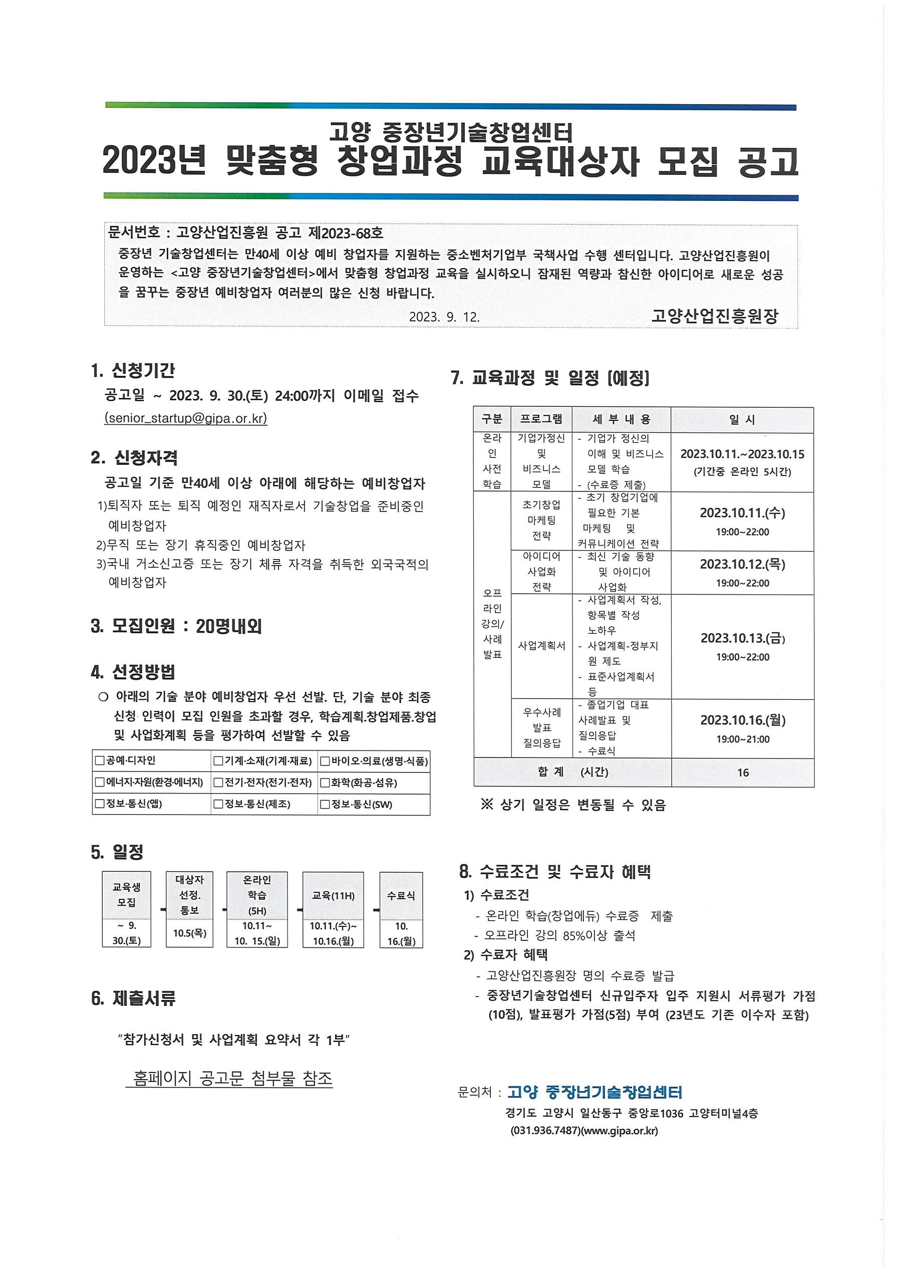 [일반] 고양 중장년기술창업센터 제3차 중장년 예비창업자 맞춤형창업과정 교육생 모집