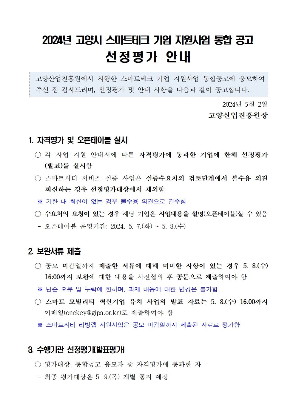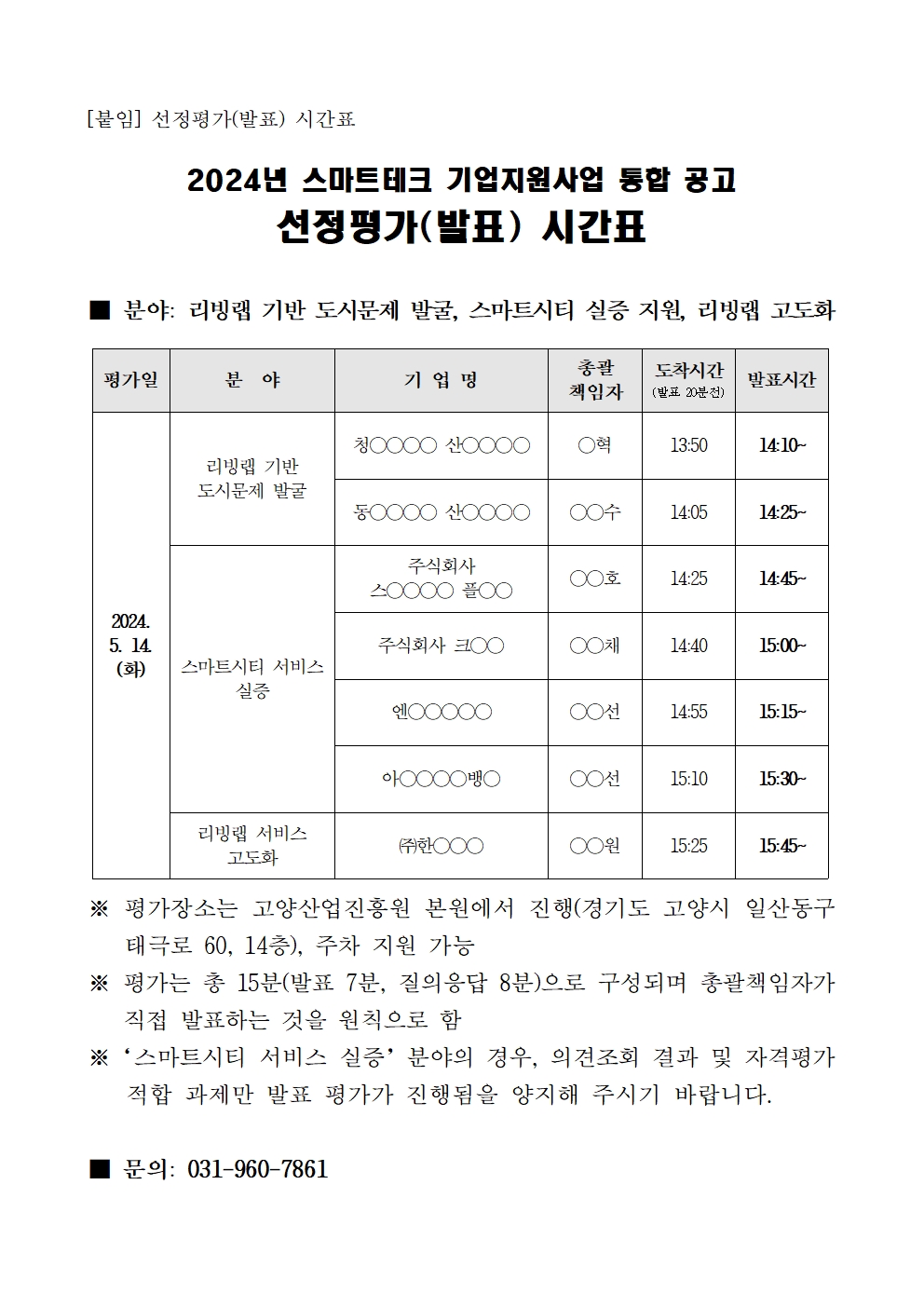 [일반] 2024년 고양시 스마트테크 기업 지원사업 통합 공고 선정평가 안내(+스마트모빌리티, 리빙랩 사업 발표평가