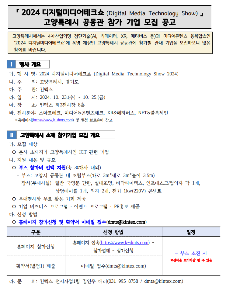 [일반] 「2024 디지털미디어테크쇼」 고양특례시 공동관 참가 기업 모집