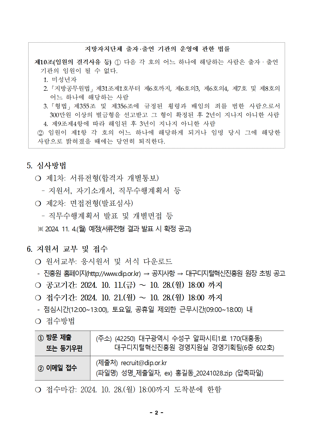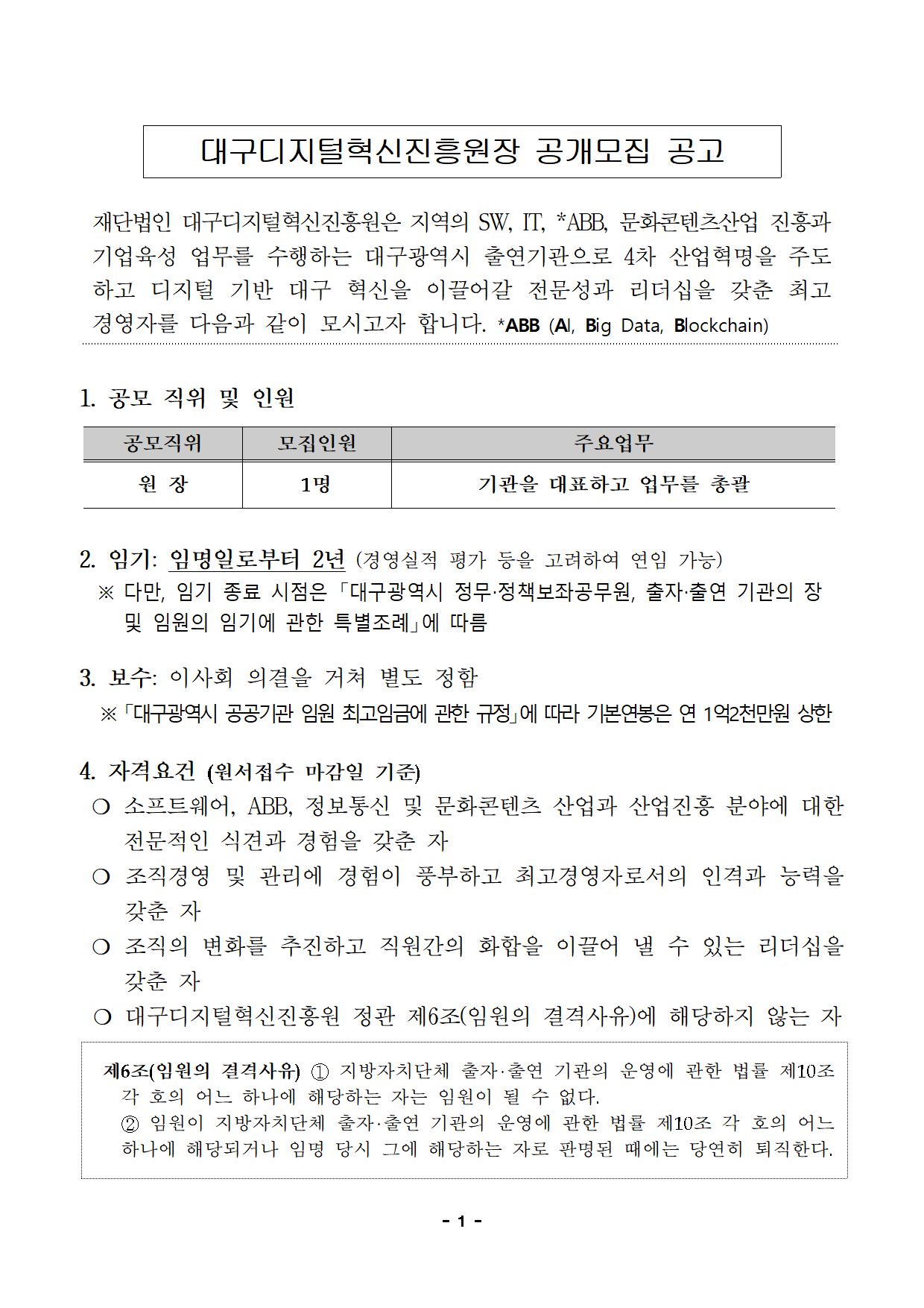 [유관기관] [대구디지털혁신진흥원] 대구디지털혁신진흥원장 공개모집 공고