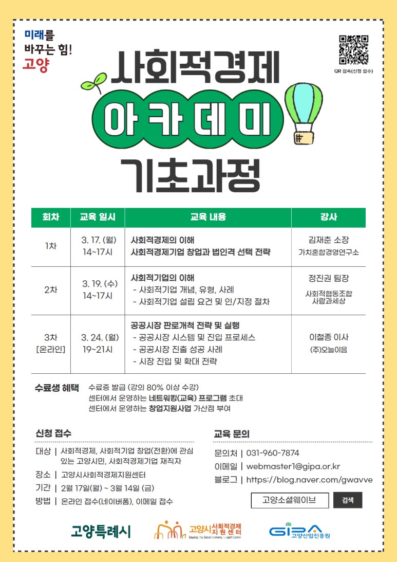 [일반] 2025년 고양시 사회적경제 아카데미 기초과정 1기(사회적기업 설립) 수강생 모집(~3월 14일)
