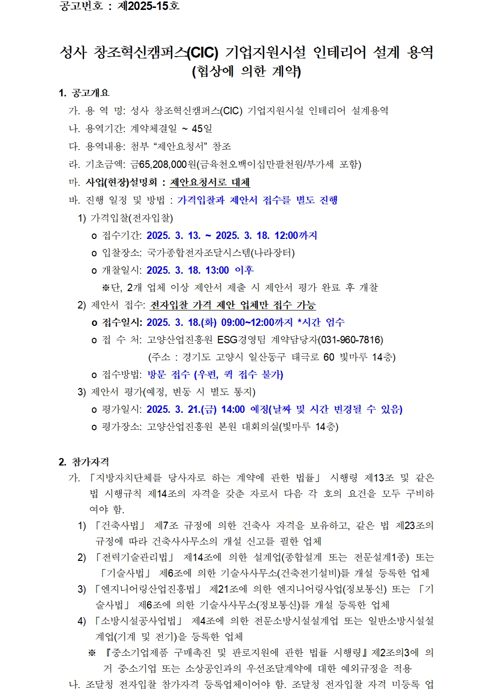 [일반] 성사 창조혁신캠퍼스(CIC) 기업지원시설 인테리어 설계용역