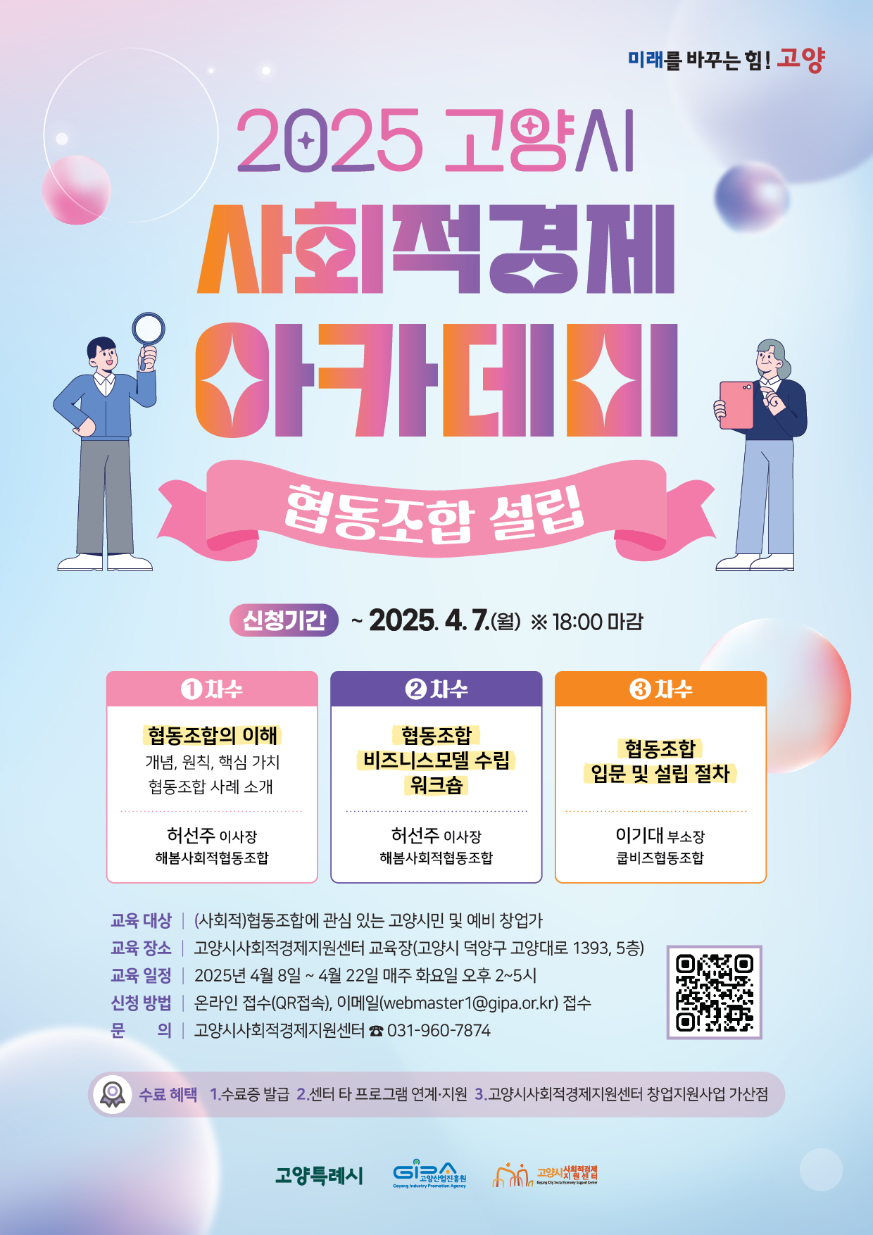 [일반] 2025년 고양시 사회적경제 아카데미 기초과정 2기 (협동조합 설립) 수강생 모집(~4월 7일)
