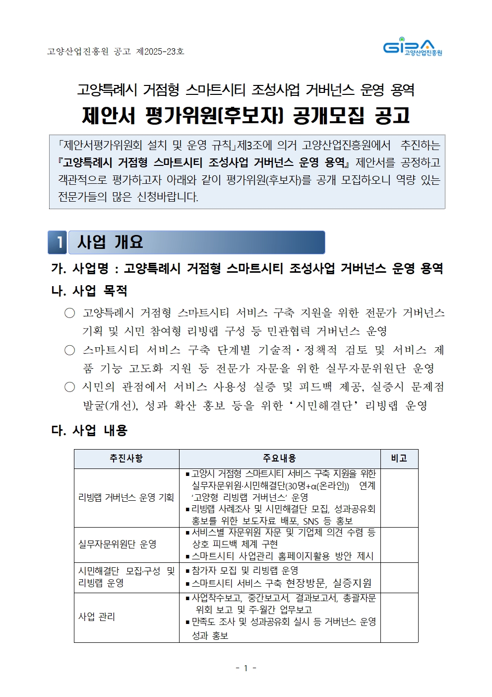 고양특례시 거점형 스마트시티 조성사업 거버넌스 운영 용역 제안서 평가위원 모집 공고.pdf
