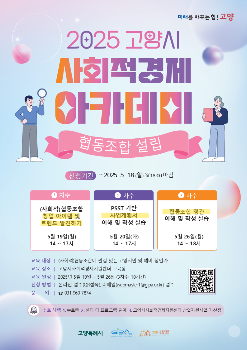 [일반] 2025년 고양시 사회적경제 아카데미 심화과정 2기(협동조합 설립) 수강생 모집(~5월 18일)