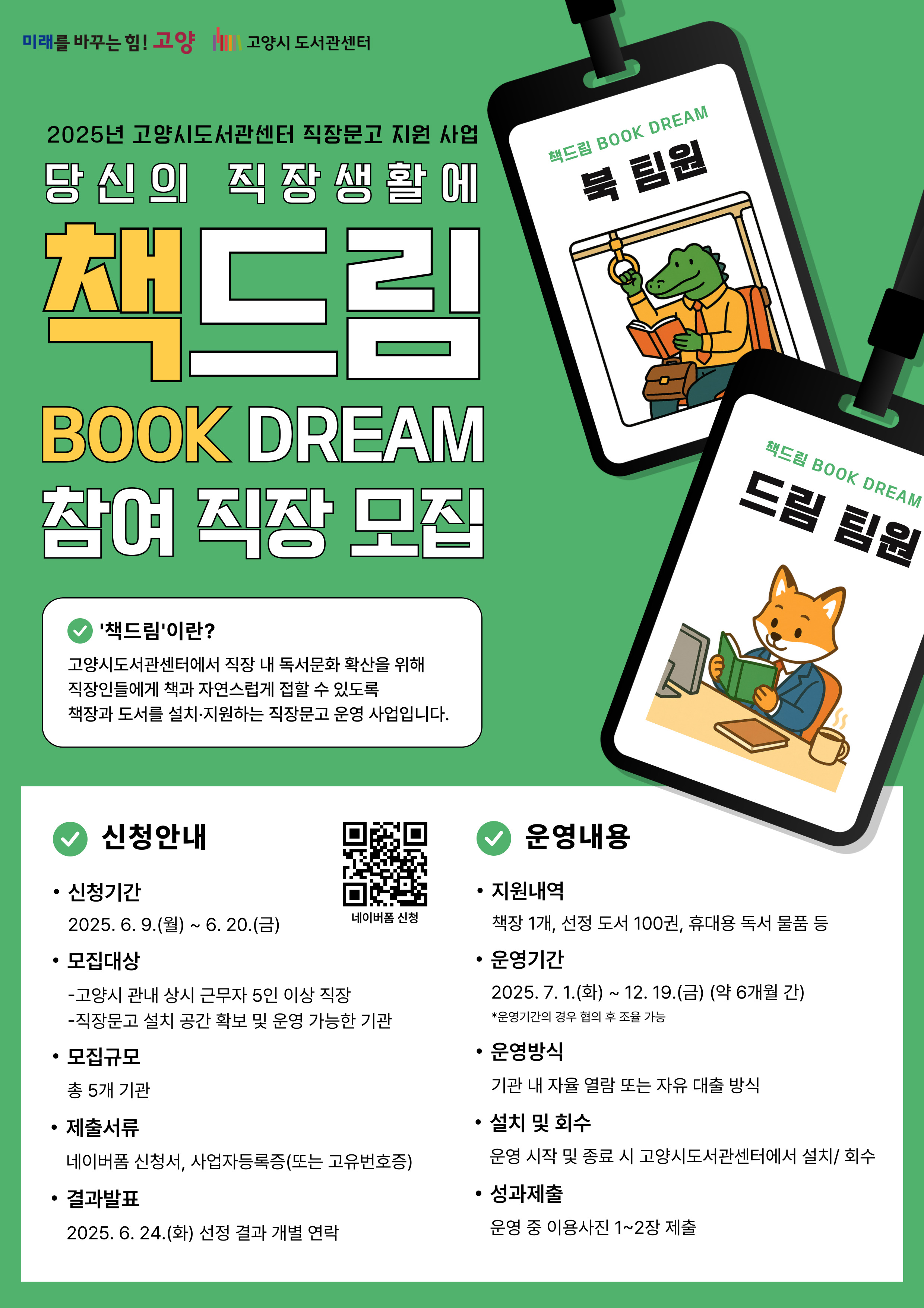 [유관기관] [고양시도서관센터] 2025년 직장문고 지원 사업 「책드림」 안내