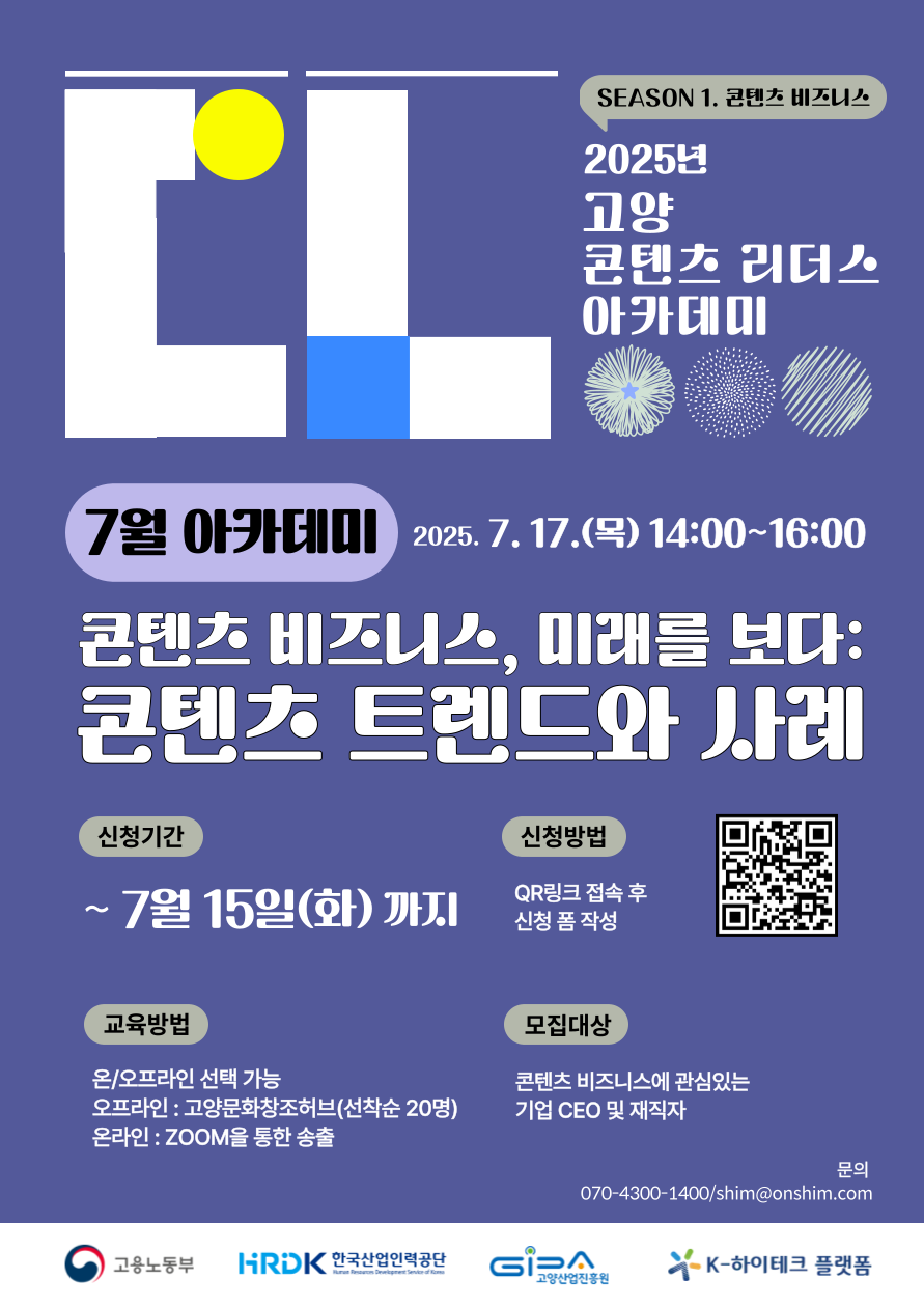 <2025년 고양 콘텐츠 기업을 위한 리더스 아카데미>가 7월 과정 참가자를 모집합니다.