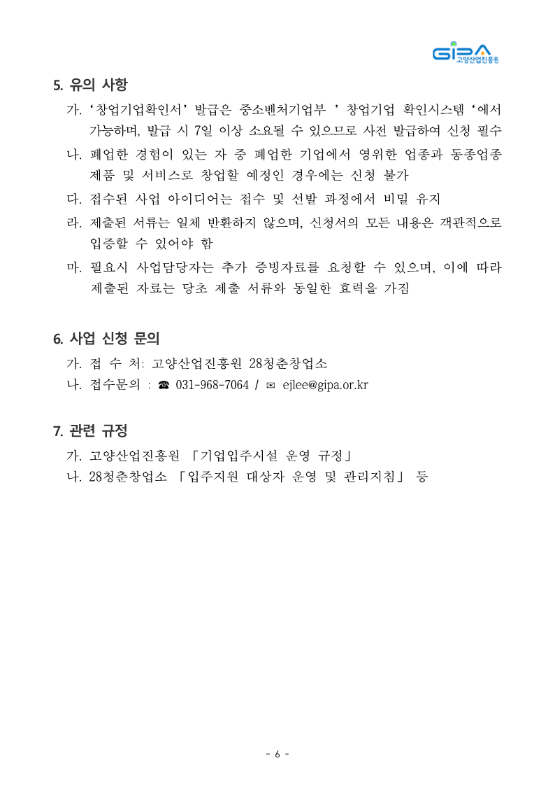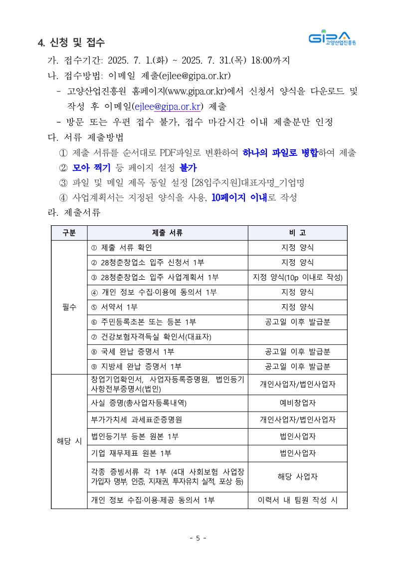 붙임 4. 2025년 2차 28청춘창업소 신규 입주기업 모집 제출 서류 양식.hwp