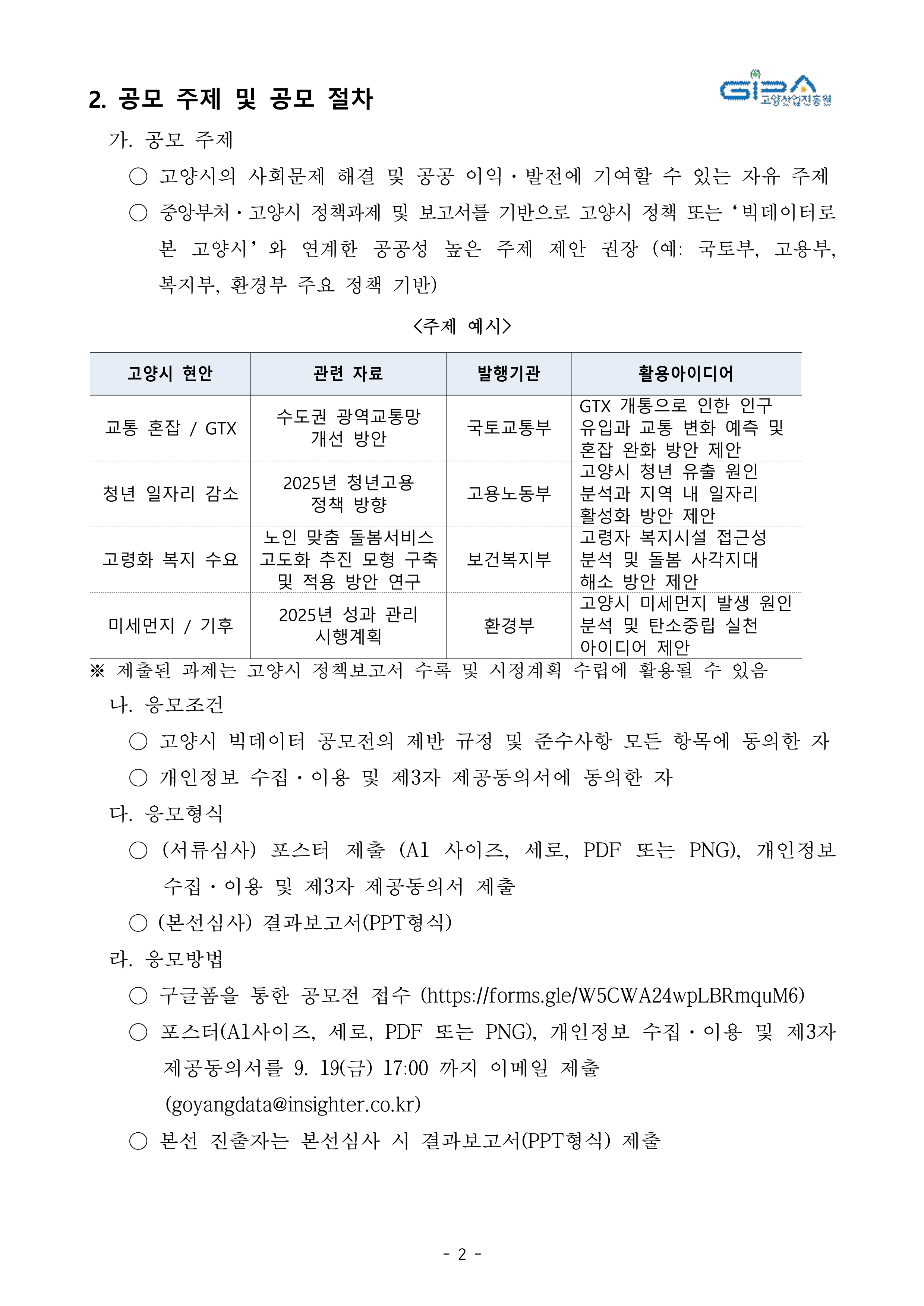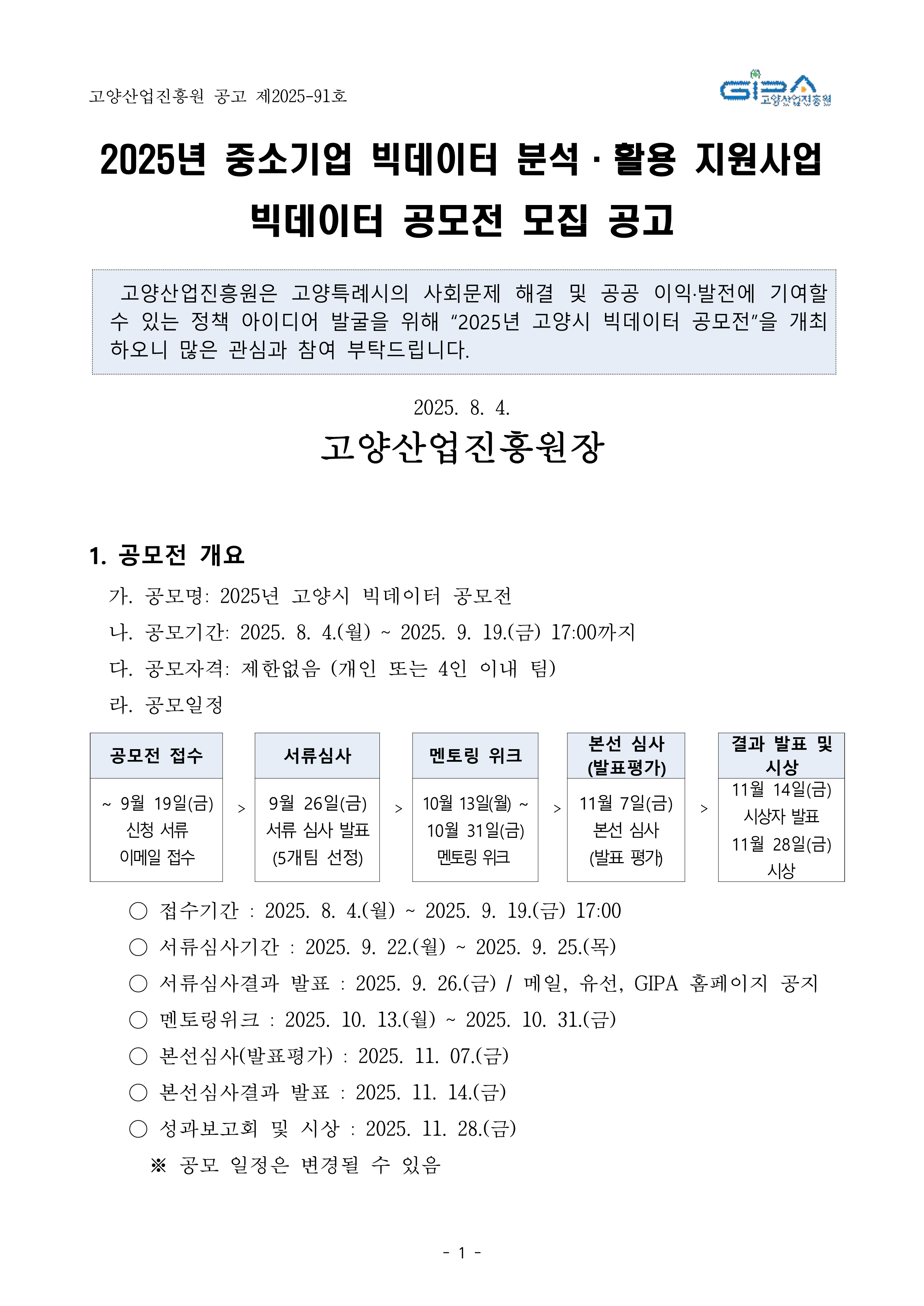 [일반] 2025년 고양시 빅데이터 공모전 모집 공고