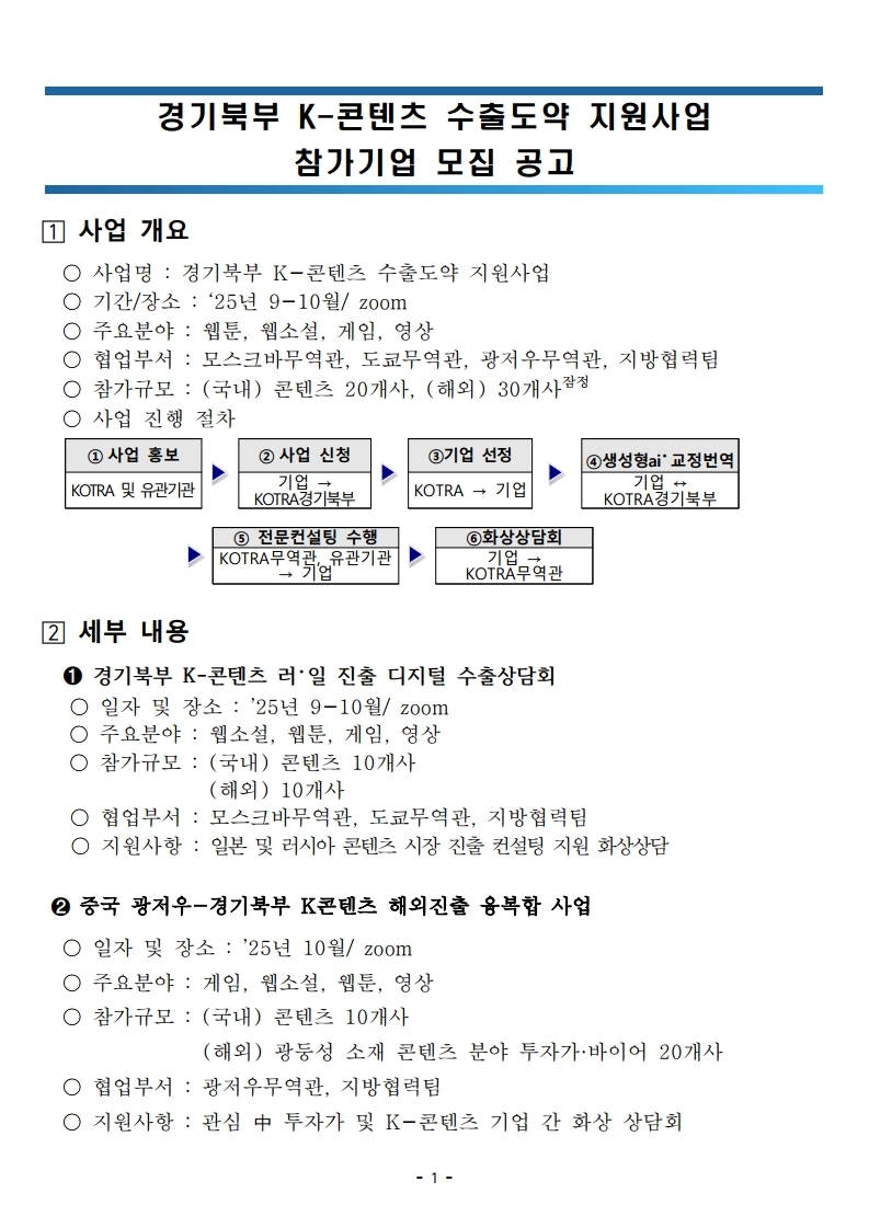 [유관기관] [KOTRA] 경기북부 K-콘텐츠 수출도약 지원사업 참가기업 모집 공고
