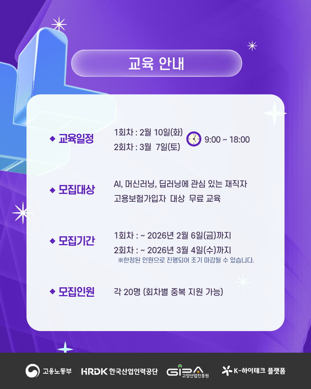 * 고양산업진흥원 K-하이테크플랫폼 교육 과정은 고용노동부, 한국산업인력공단의 사업으로 고용보험 가입자 대상 전액 무료로 진행됩니다.