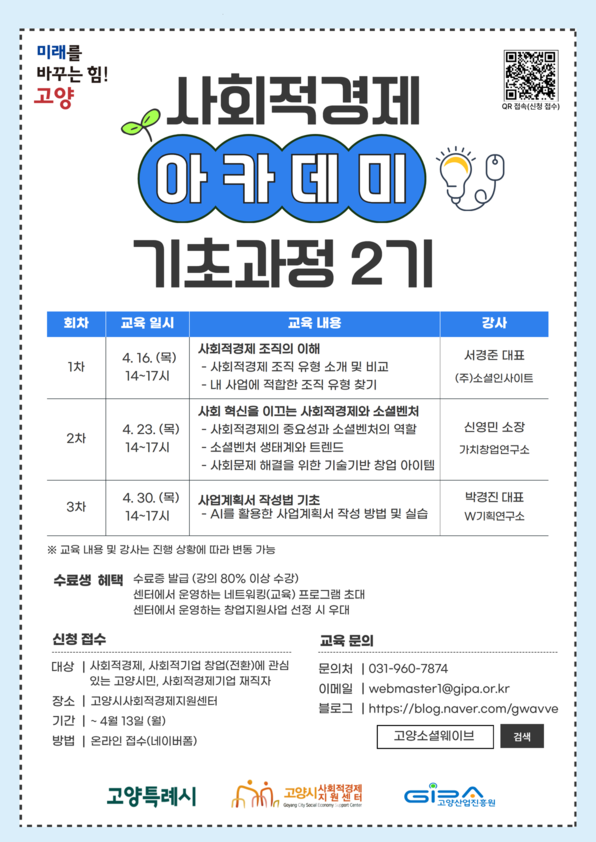 [ 2026년 고양시 사회적경제 아카데미 기초과정 2기 ] 수강생 모집