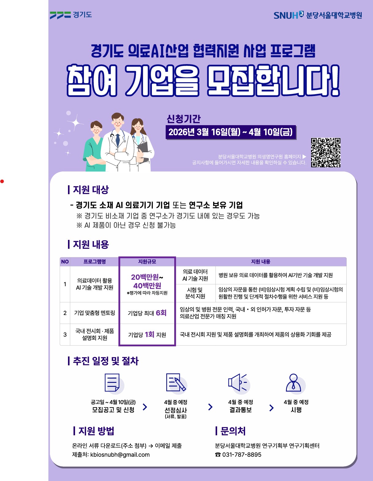 [일반] [분당서울대학교병원] 2026년도 경기도 의료AI산업 협력지원 사업 프로그램 기업 모집 공고