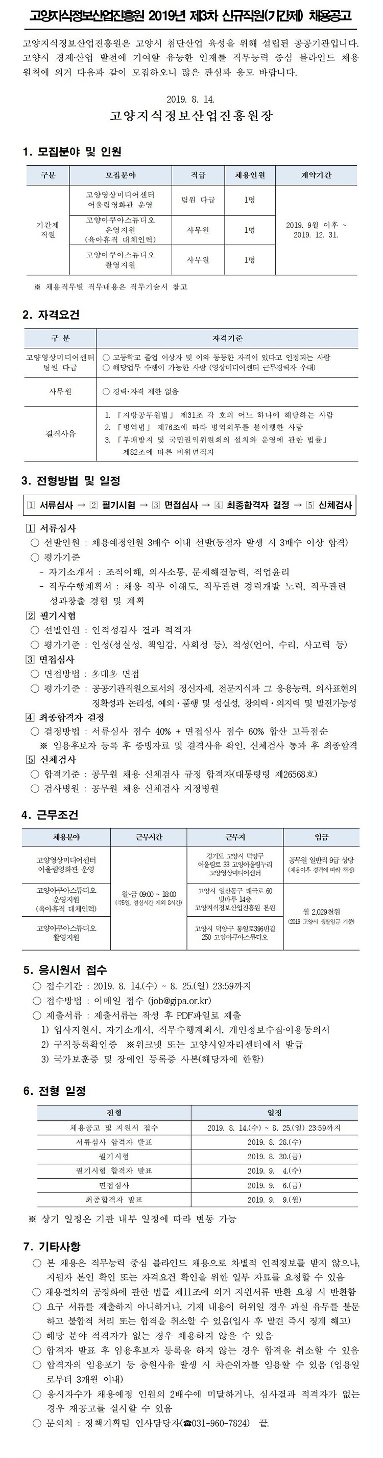 [채용] 2019년 제3차 신규직원(기간제) 채용 공고