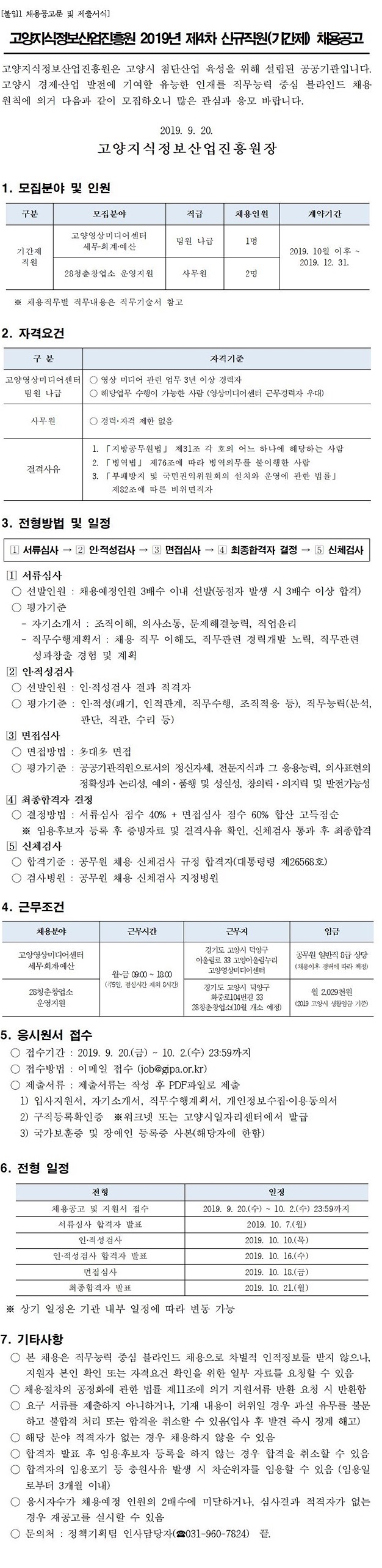 [채용] 2019년 제4차 신규직원(기간제) 채용 공고