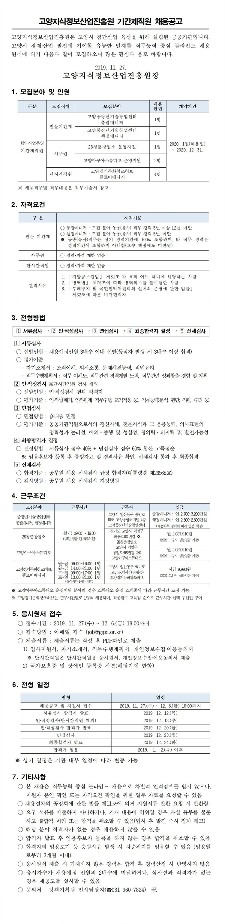 (공고문)고양지식정보산업진흥원 기간제직원 채용 공고+직무기술서.hwp