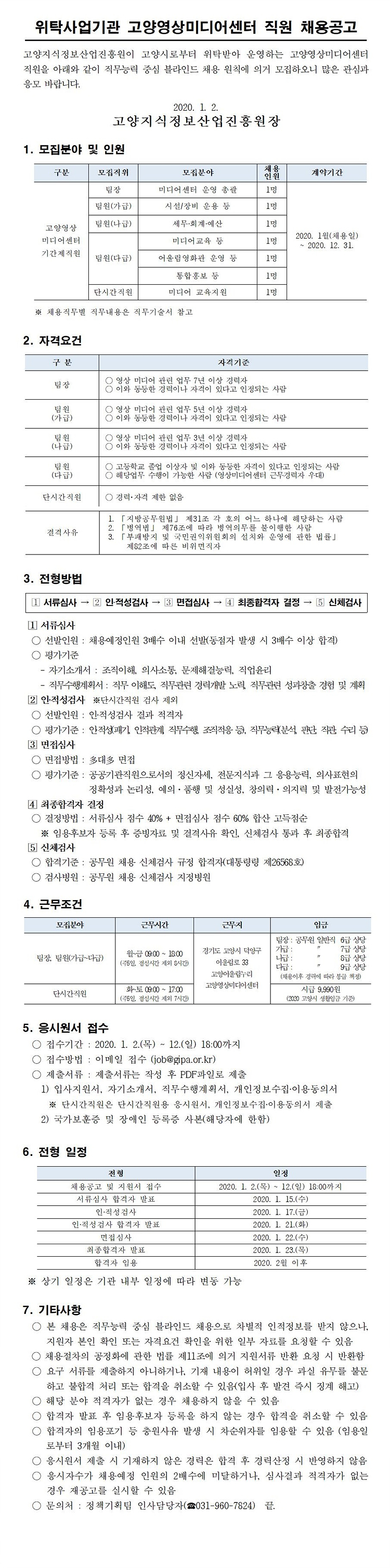채용공고문 및 직무기술서_고양영상미디어센터 직원채용.hwp