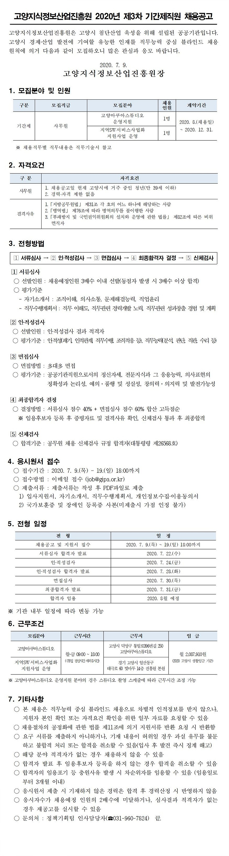 [채용] 고양지식정보산업진흥원 선임직 이사 공개모집 최종합격자 공고
