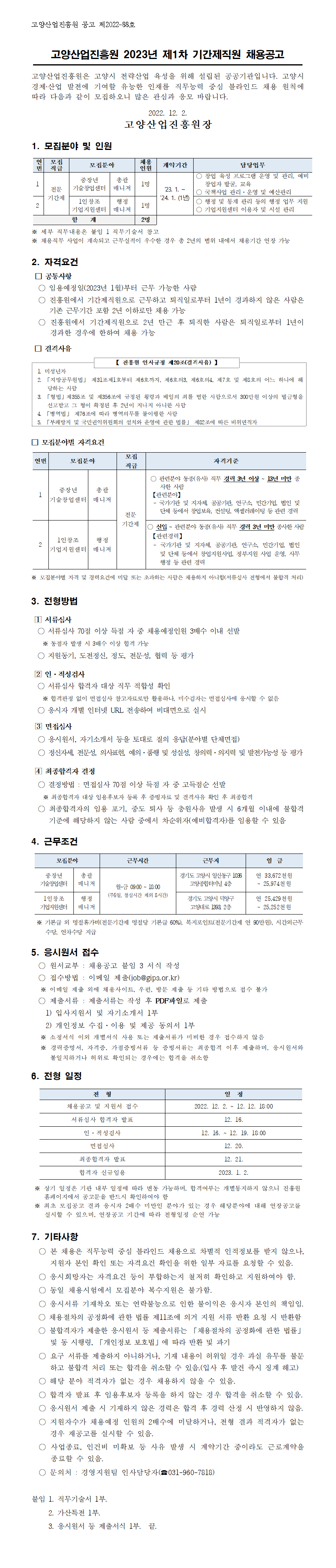 [채용] 고양산업진흥원 2023년 제1차 기간제직원 채용공고